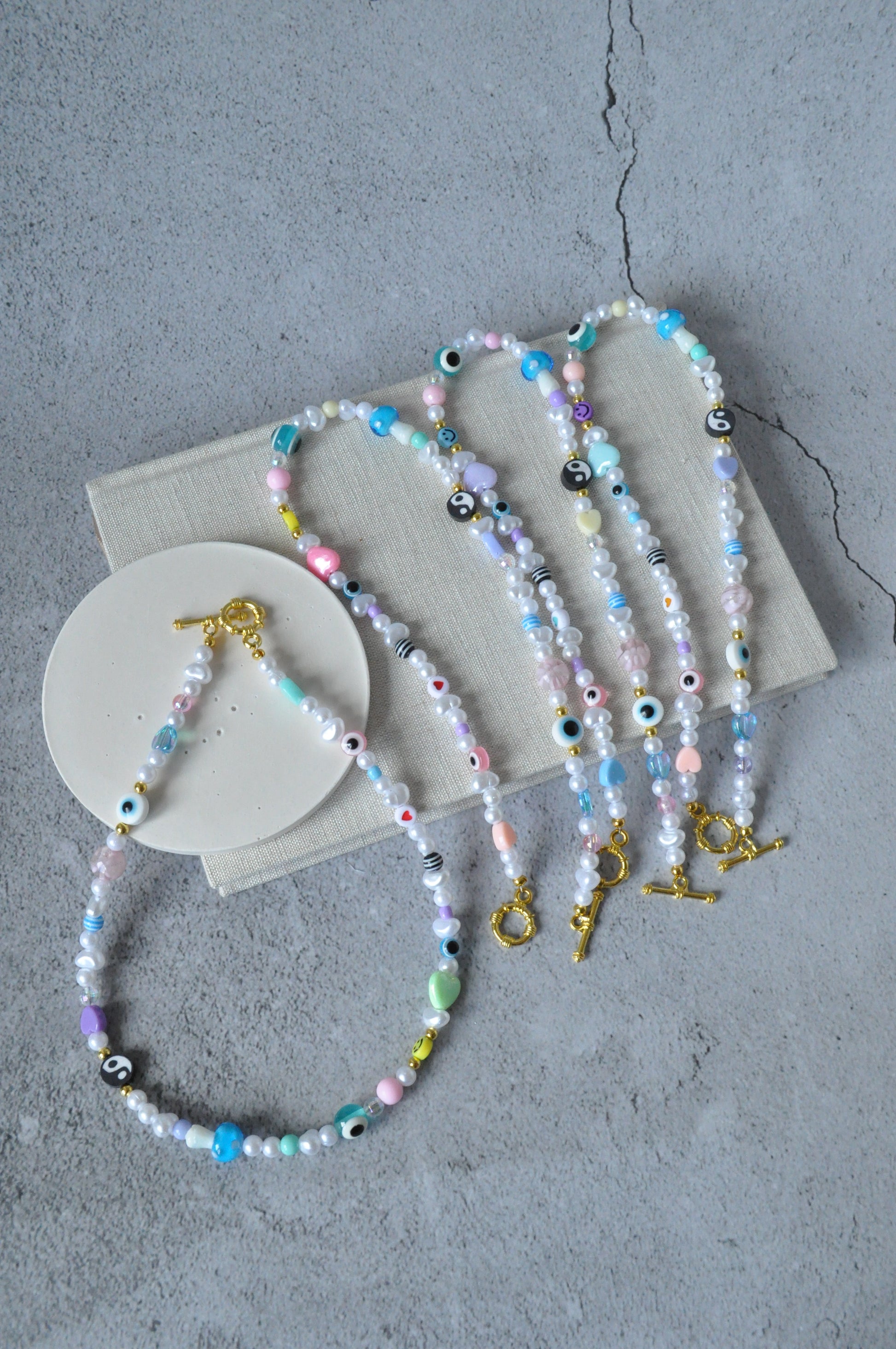 - Faux Pearls, Acrylic Beads, Glass Lampwork Mushroom Bead, Glass Seed Beads