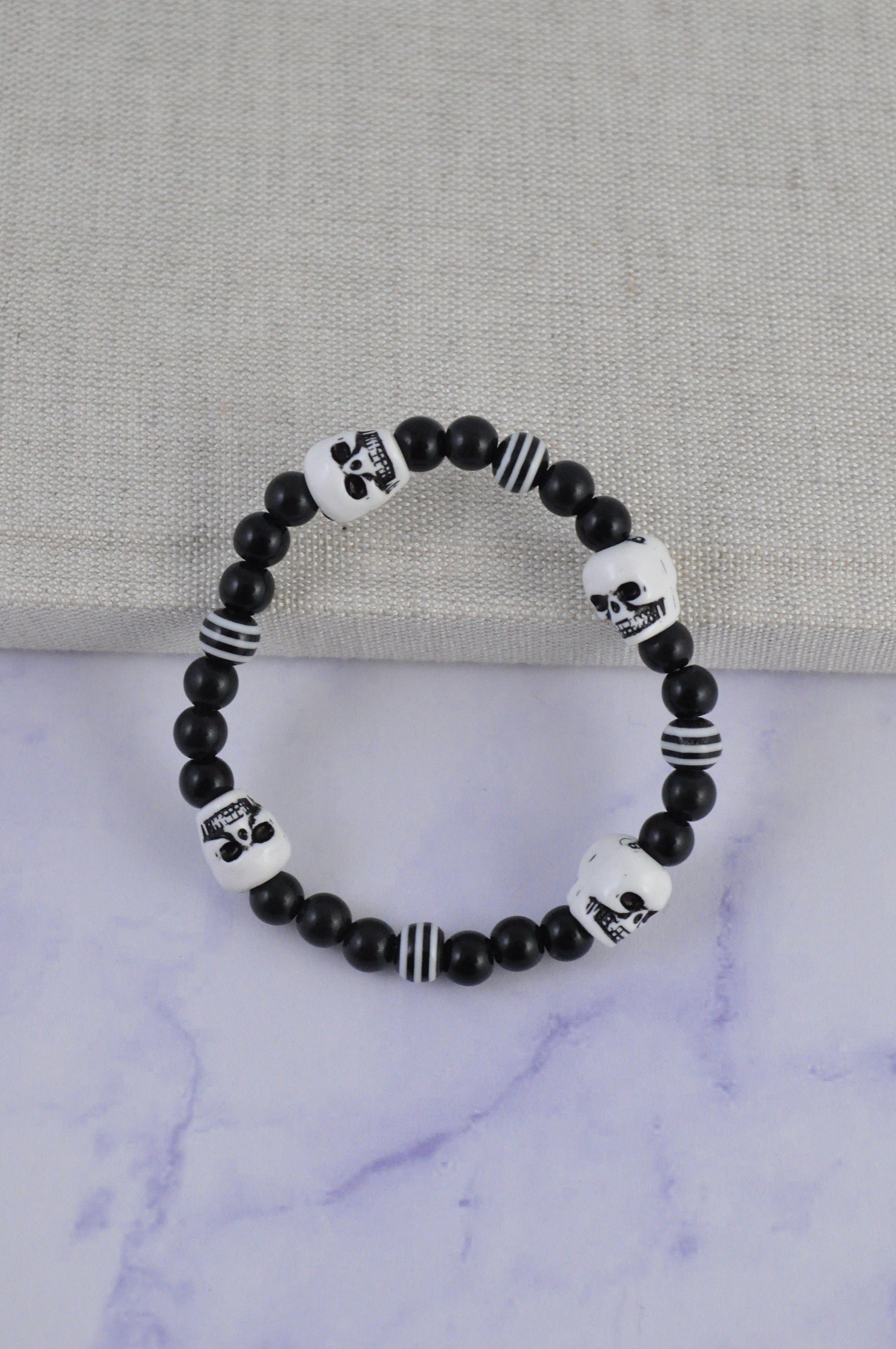 Add a touch of spookiness to your style with our unisex Beaded Bracelet with Skulls. Durable, edgy, and perfect for Halloween or everyday wear. A true statement piece!