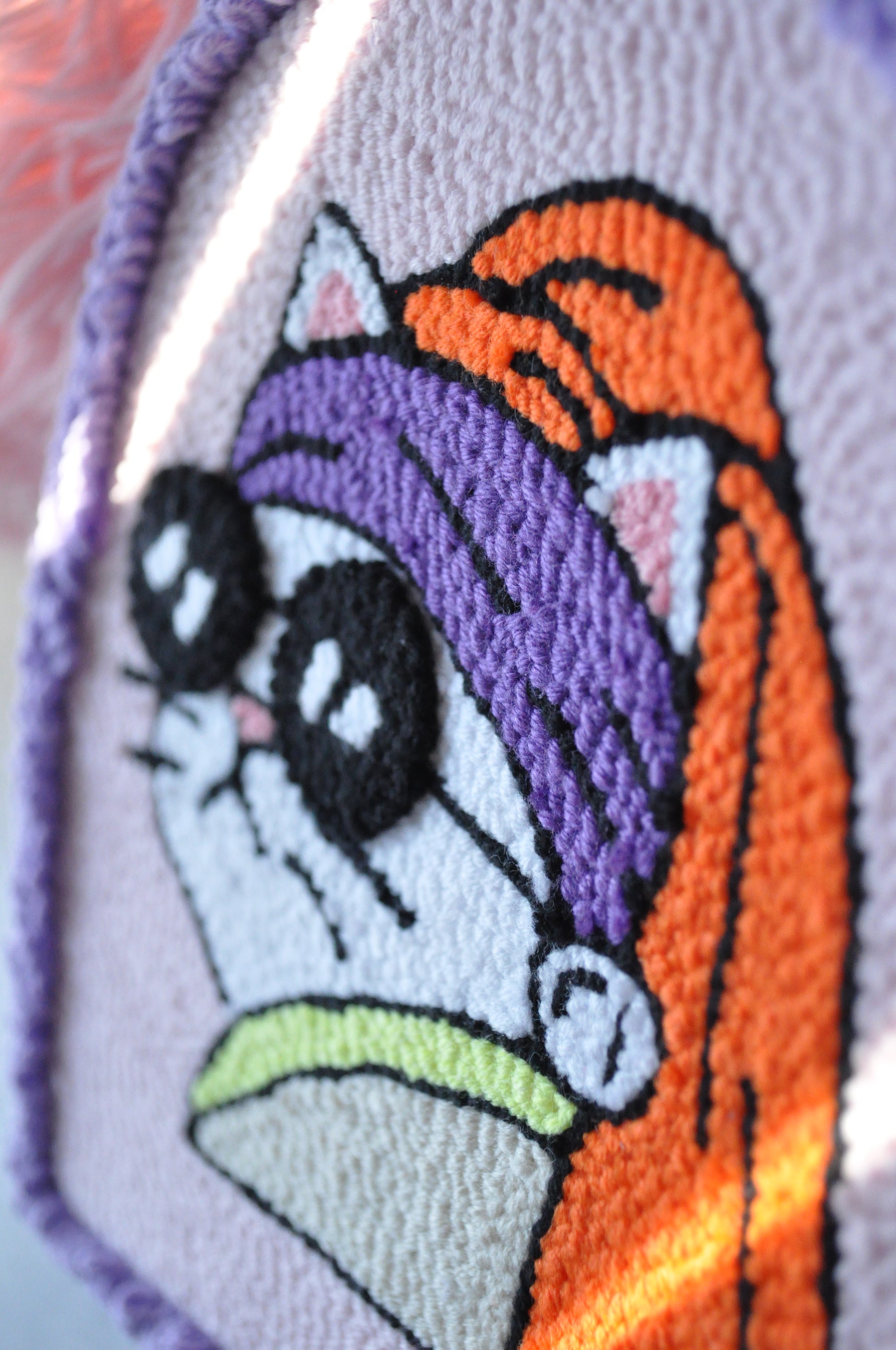 A playful twist on a classic! This handmade punch needle wall hanging features a stylish cat in a headscarf and sunglasses, exuding charm and elegance. Crafted with soft, high-quality yarn and finished with delicate beaded details, it’s perfect for adding character to any space. A unique statement piece for cat lovers and art enthusiasts alike!