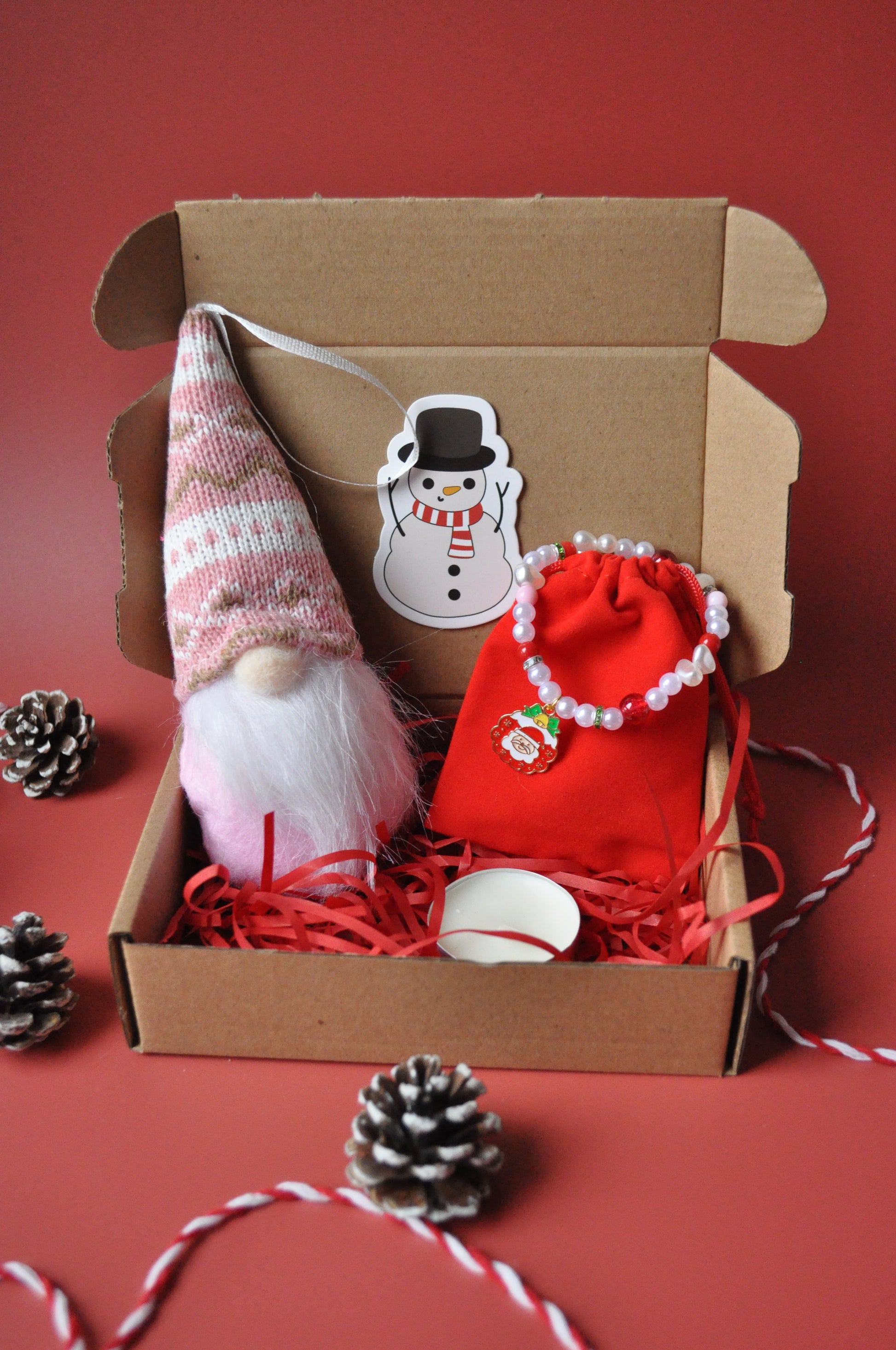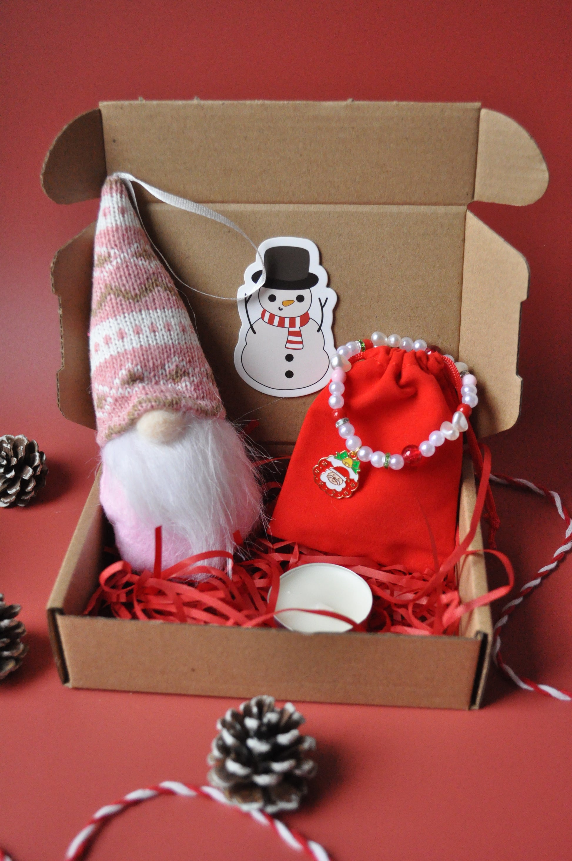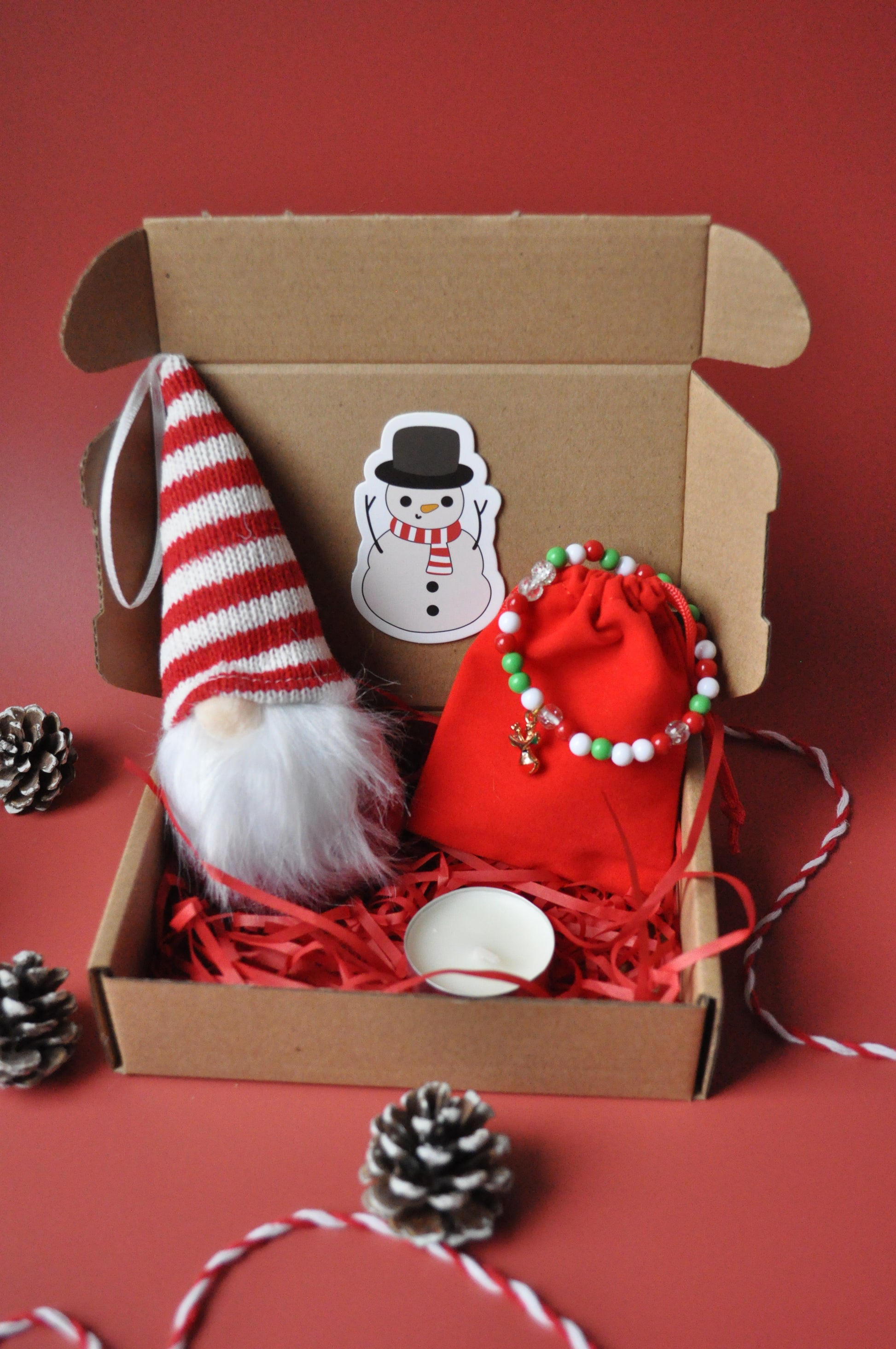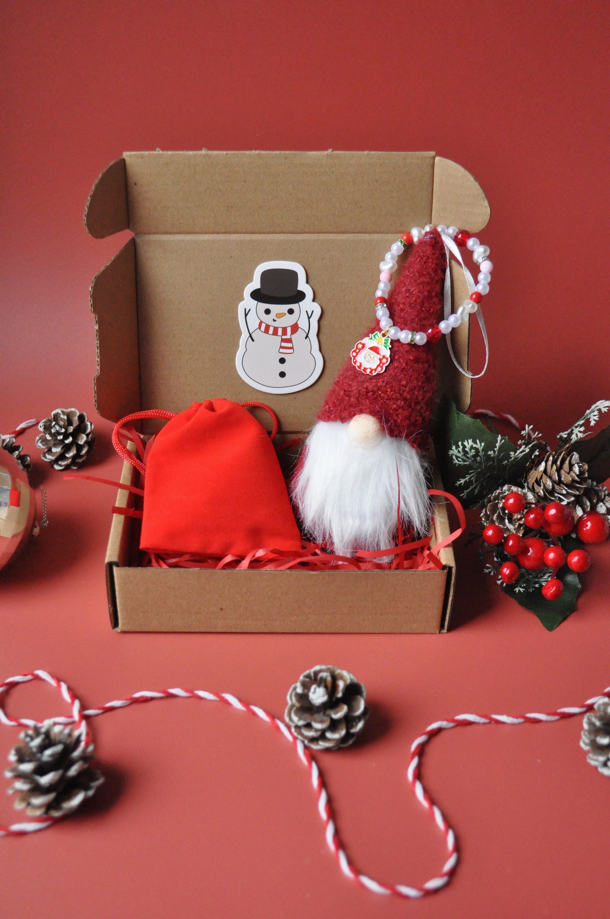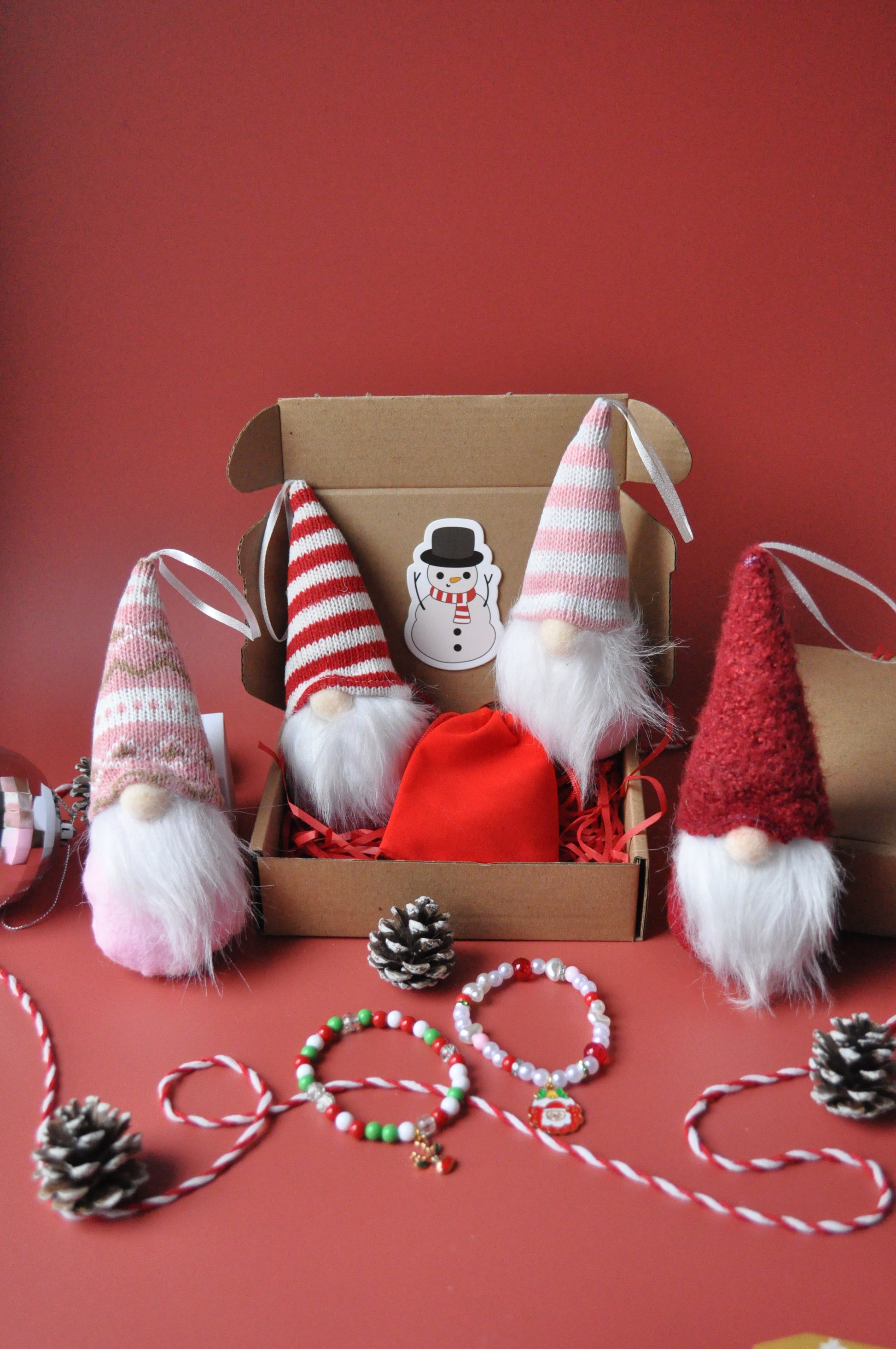 Add a touch of holiday magic with this charming gift set, featuring a festive gonk ornament and a randomly selected charm bracelet. The gonk comes in two seasonal themes – pink and red – with varying hat designs, adding unique character to each set. Charm brracelets are included at random, offering an element of surprise. The set includes one gonk ornament, one charm bracelet, and a tealight candle, all beautifully packaged for the season. Perfect for gifting or bringing a whimsical holiday vibe to your decor!