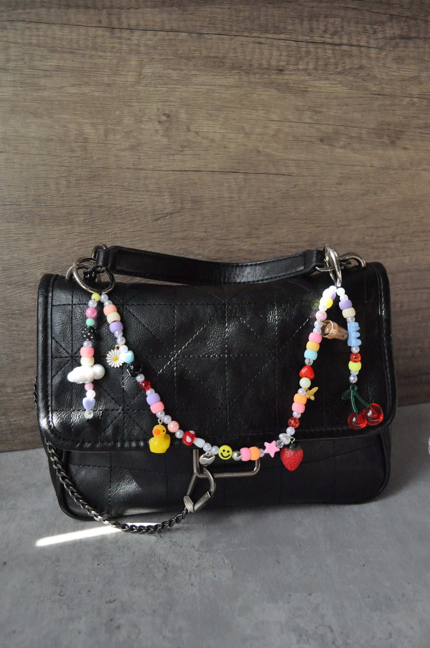 Bring the good vibes everywhere you go with this chunky beaded bag charm! Featuring a playful mix of fun beads like a daisy, duck, cherry, and a mini magic 8 ball—each one is full of personality and charm. Customise it with your name or initial for that extra personal touch. With double swivel clasps, it easily clips onto your bag, keys or backpack. Handmade, vibrant, and totally mood-lifting.