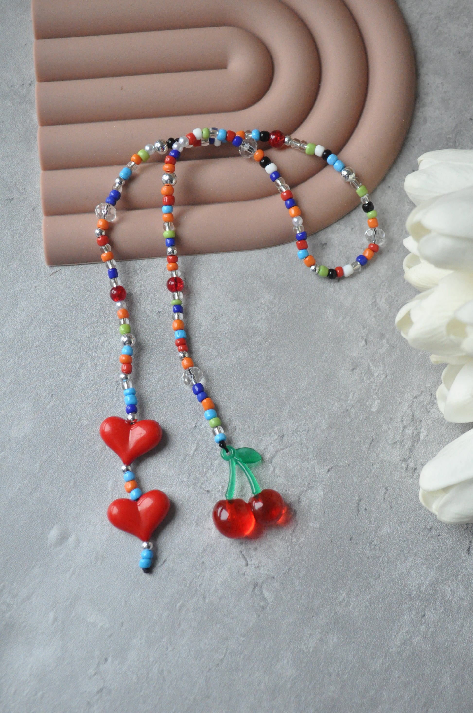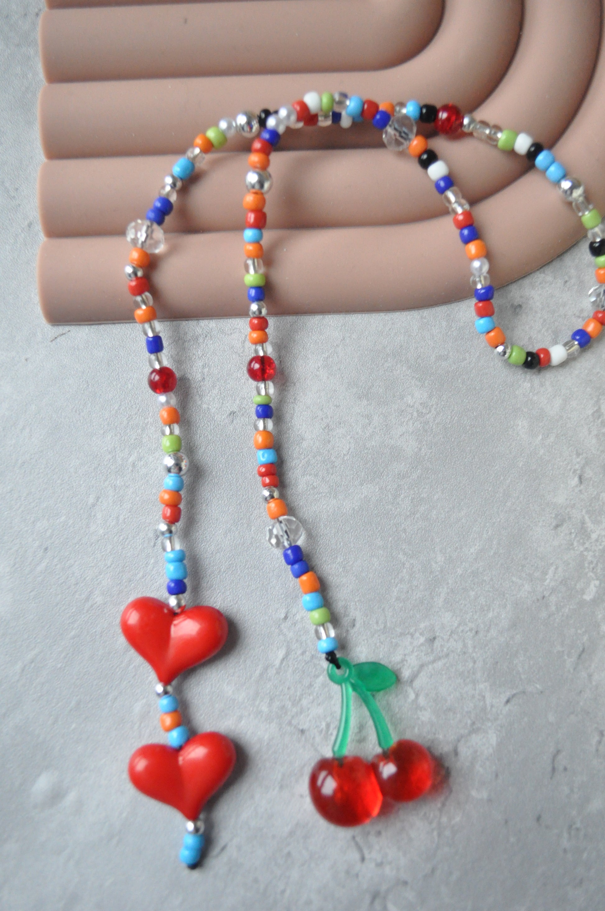Elevate your bag's style with this Personalised Chunky Heart Cherry Beaded Bag Charm. Featuring one big cherry charm and two chunky heart beads, this accessory is the perfect blend of playful and chic. Designed for handbags, it adds a touch of personality and flair to your look. Crafted with high-quality materials, this durable bag charm is a standout piece. Whether as a gift or a treat for yourself, it's a charming way to personalise any bag.