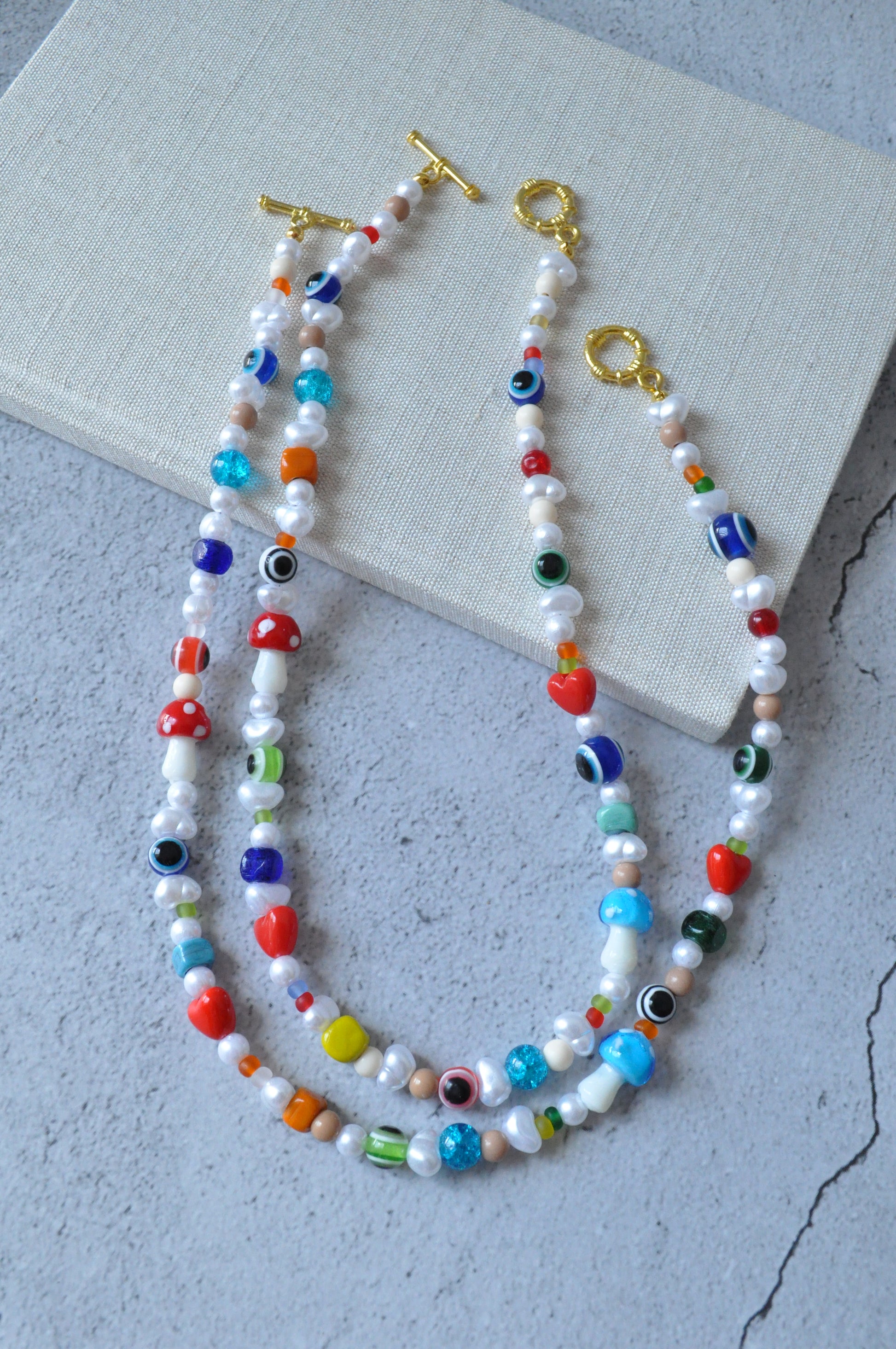 - Faux Pearls, Murano Beads, Acrylic Beads, Glass Seed Beads, Lampwork Mushroom Bead