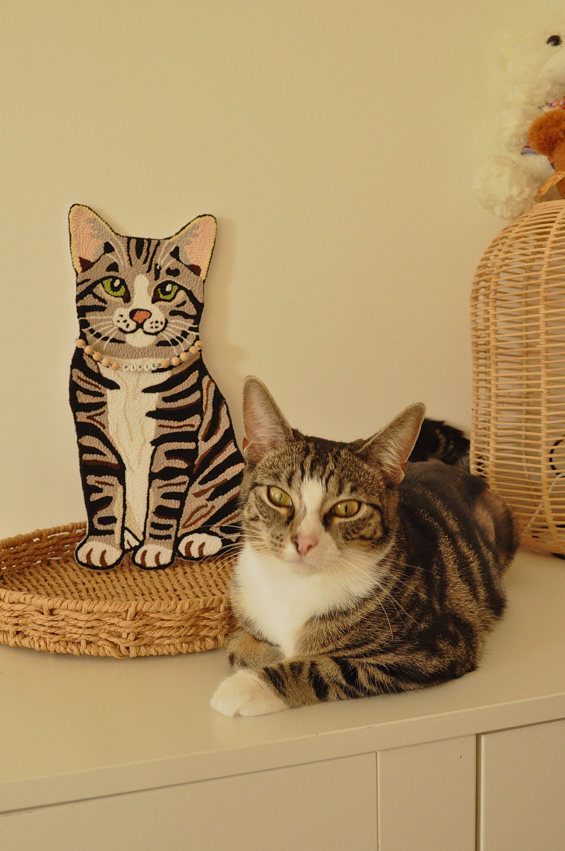 A handmade tufted wall art piece created from your pet’s photo. One standard size.