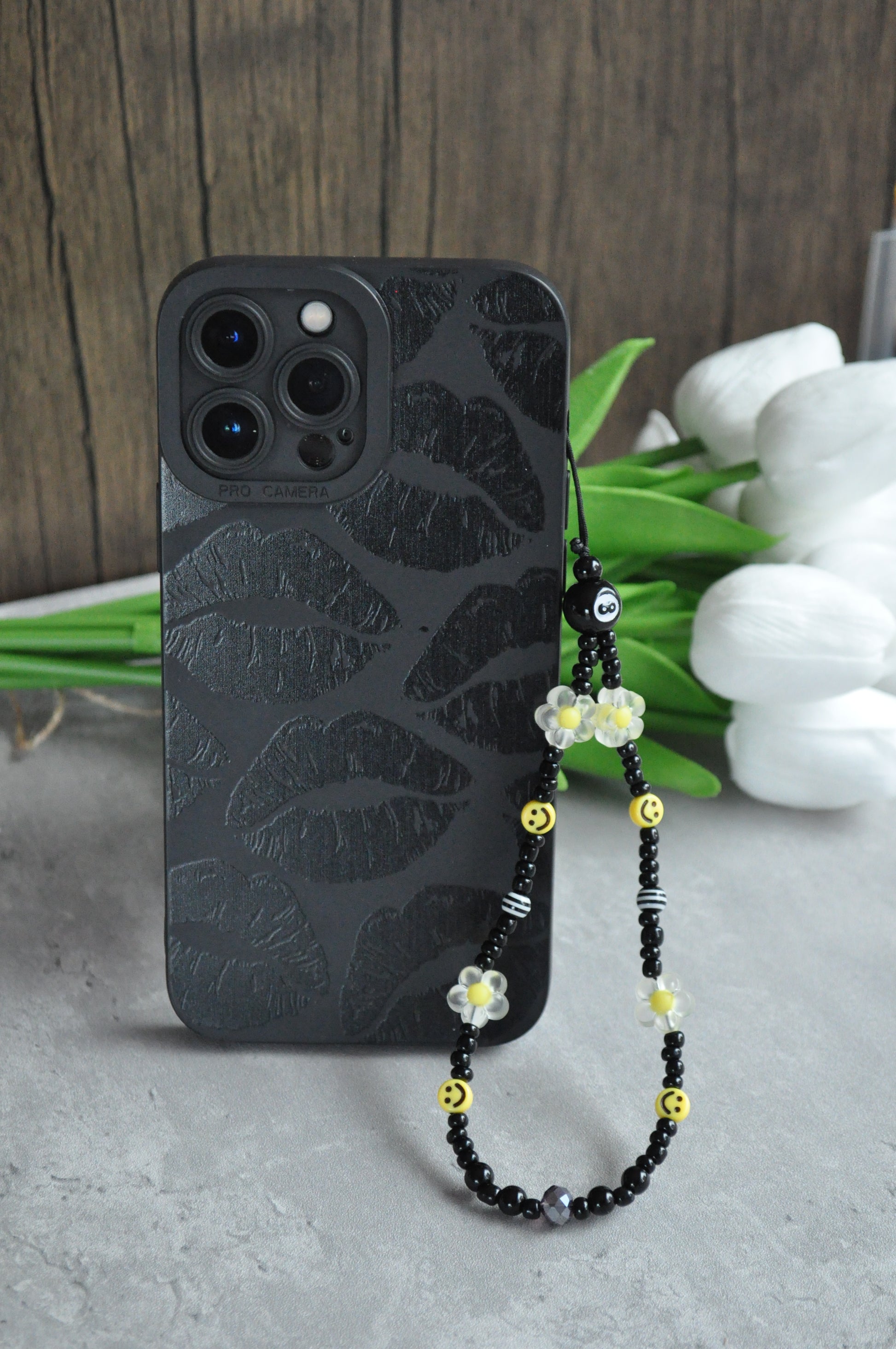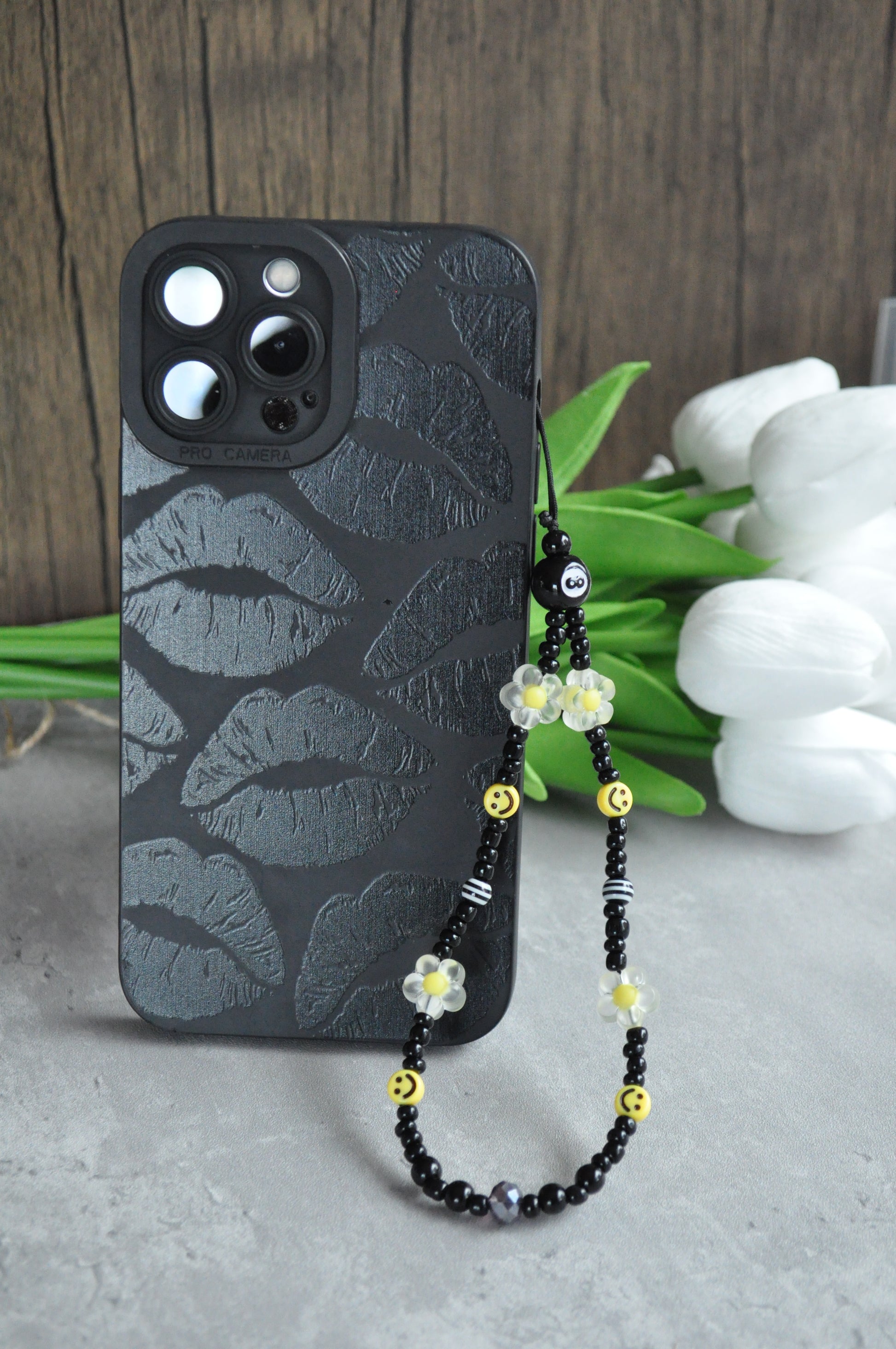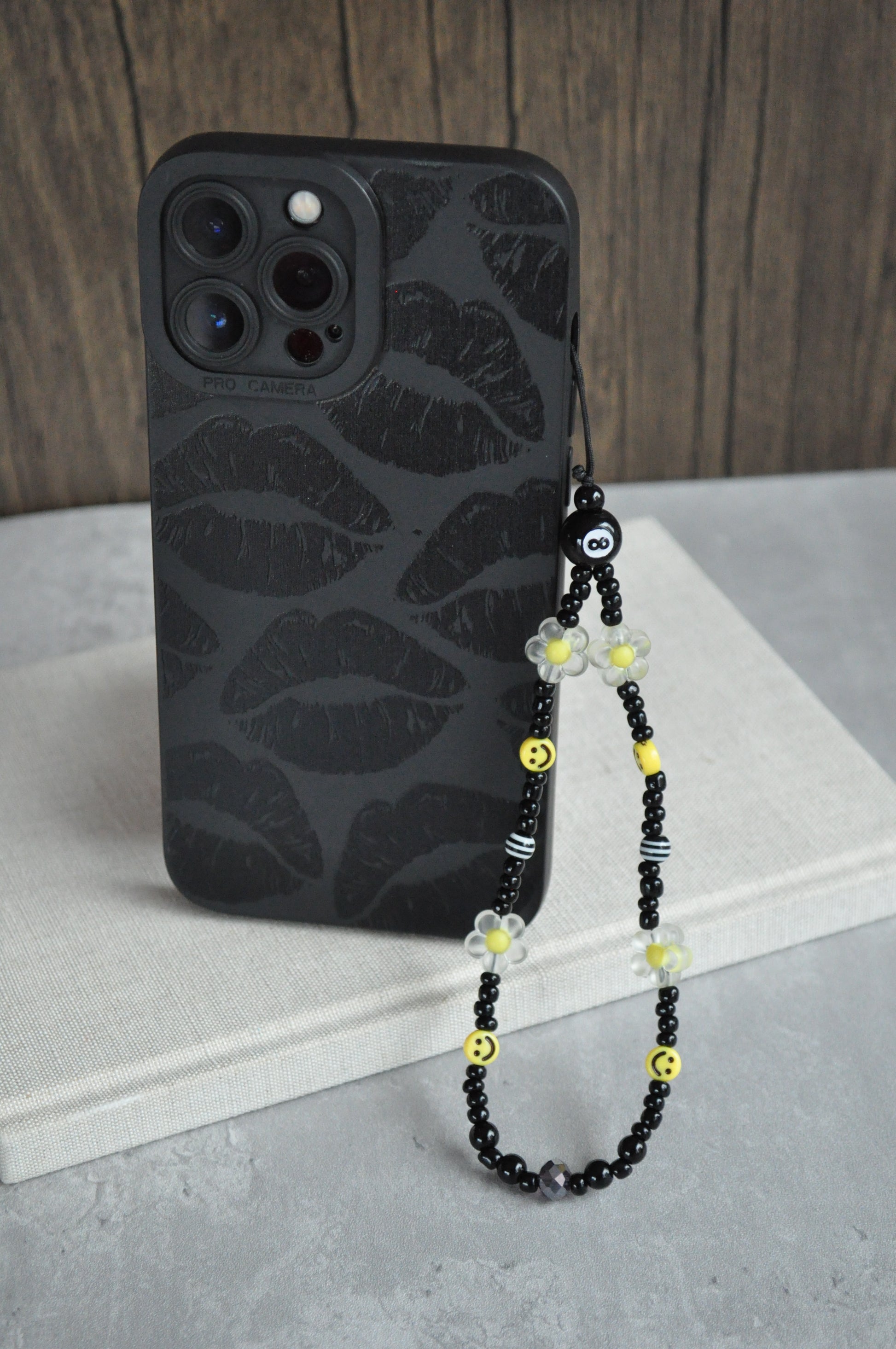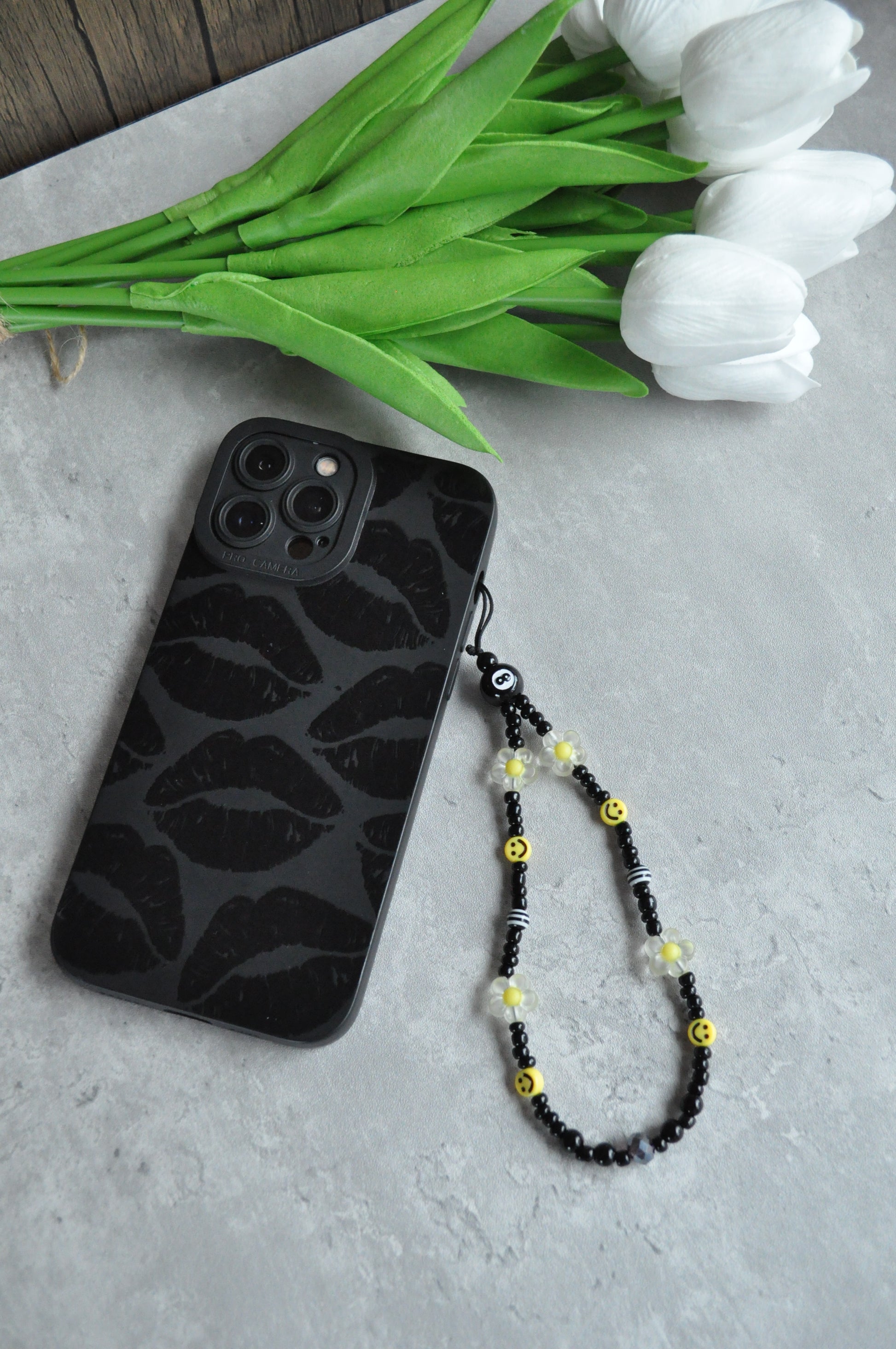 Our Daisy Magic Ball Phone Charm features sleek black seed beads and a playful daisy design. Personalise it with your name or initials for a unique, stylish accessory.