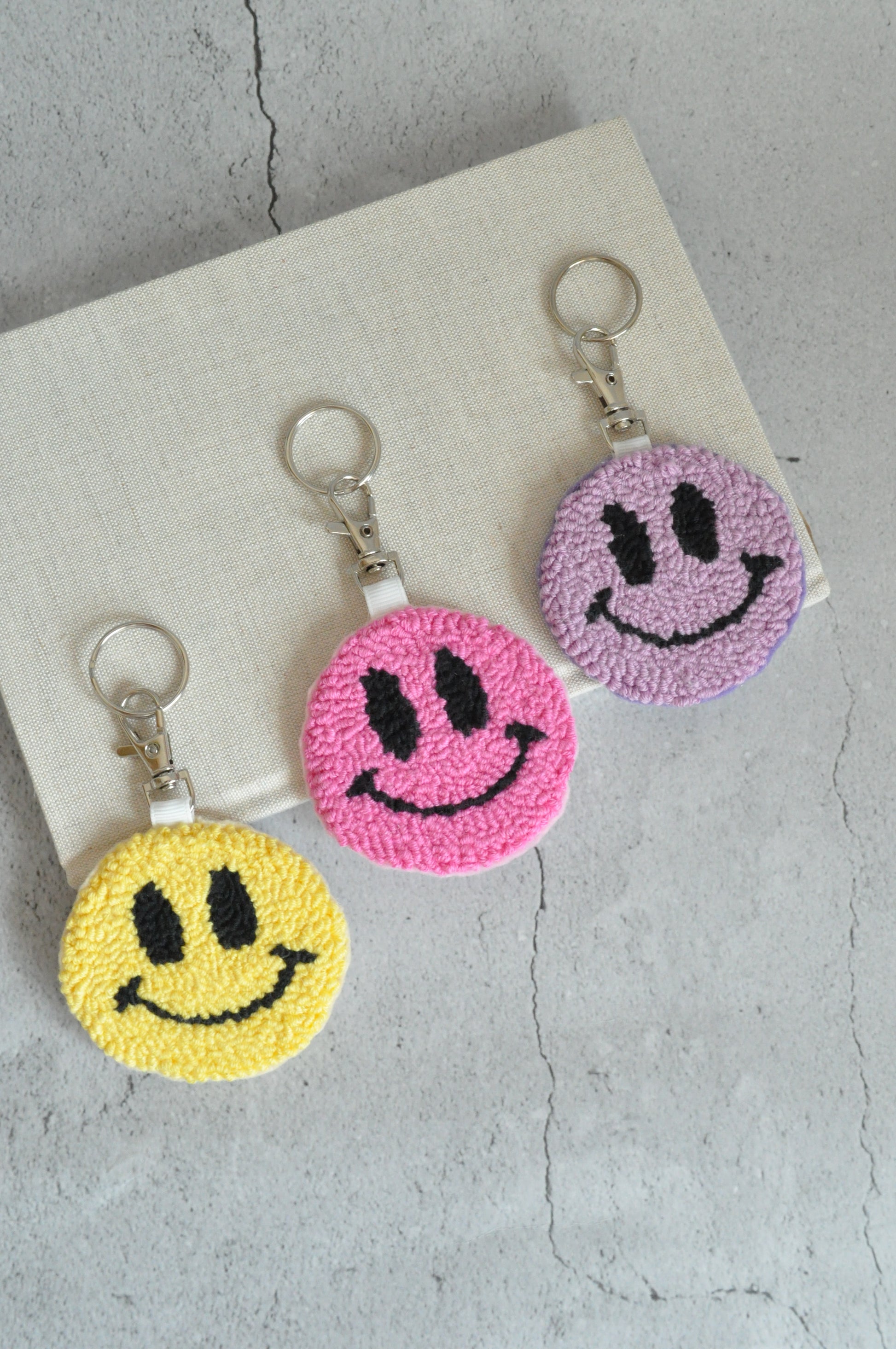 Add a touch of whimsy and personality to your bags with our versatile cute smiley face punch needle keychains! Not only are they adorable accessories for your keys, but they also double as charming bag charms. Crafted with meticulous attention to detail, each keychain features a delightful smiley face design that is bound to catch everyone's attention. Made from premium materials, these keychains are durable and designed to withstand everyday use. Elevate your style and showcase your unique taste with our cute smiley face punch needle keychains that effortlessly transform into eye-catching bag charms. Shop now and let your bags exude charm and cuteness!