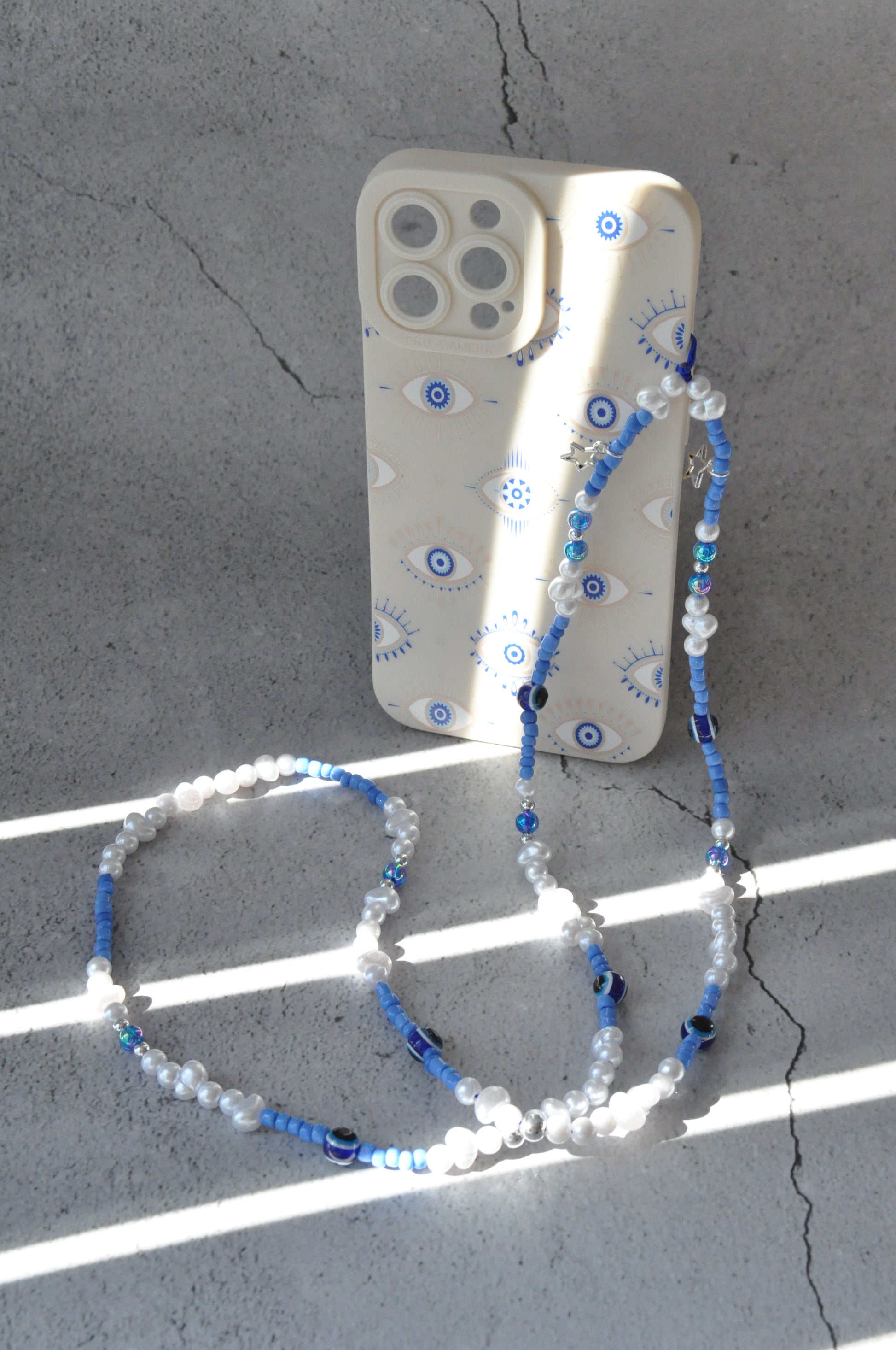 Make a lasting impression with this bold statement piece. the evil eye phone charm is perfect for dressing up your smartphone, or as a gift for your friends and family. Each phone charm can be personalised which makes them even better. This is a perfect accessory for your phone, that helps to prevent slipping from your hands. Made from the highest quality beads and durable thread.