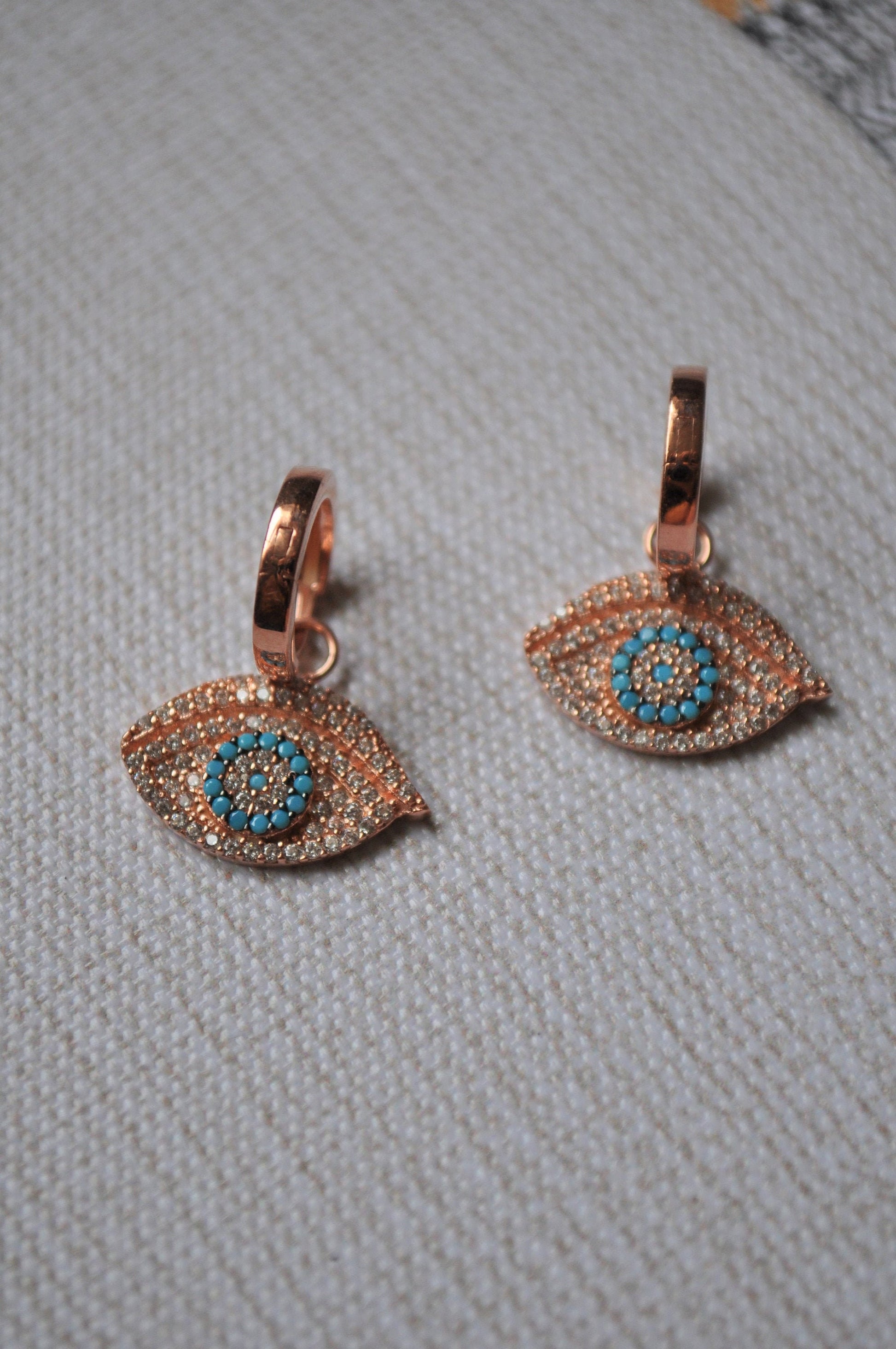 Size: approx 10 mm inner diameter. Eye charm measures 18 x 11 mm.