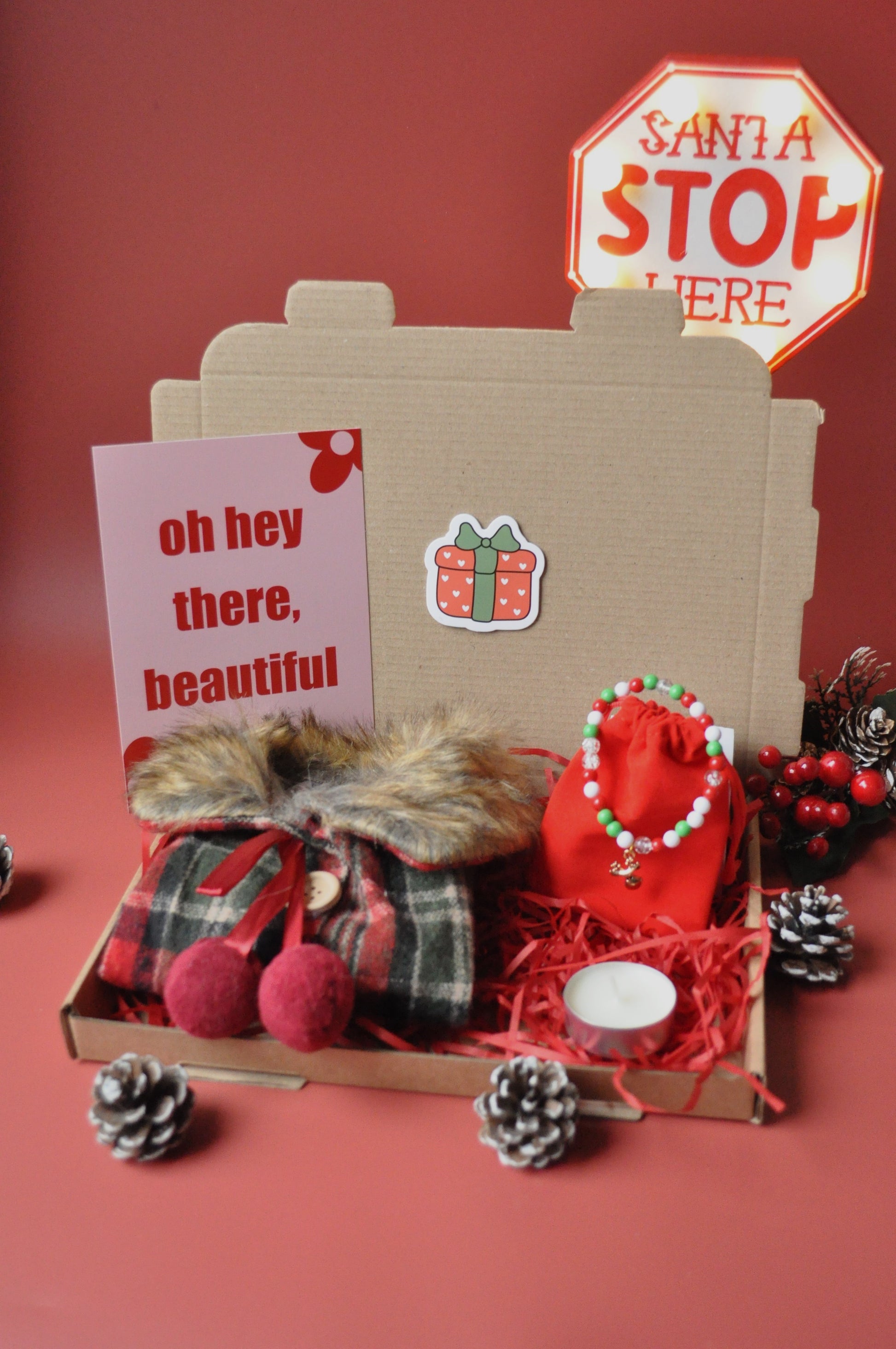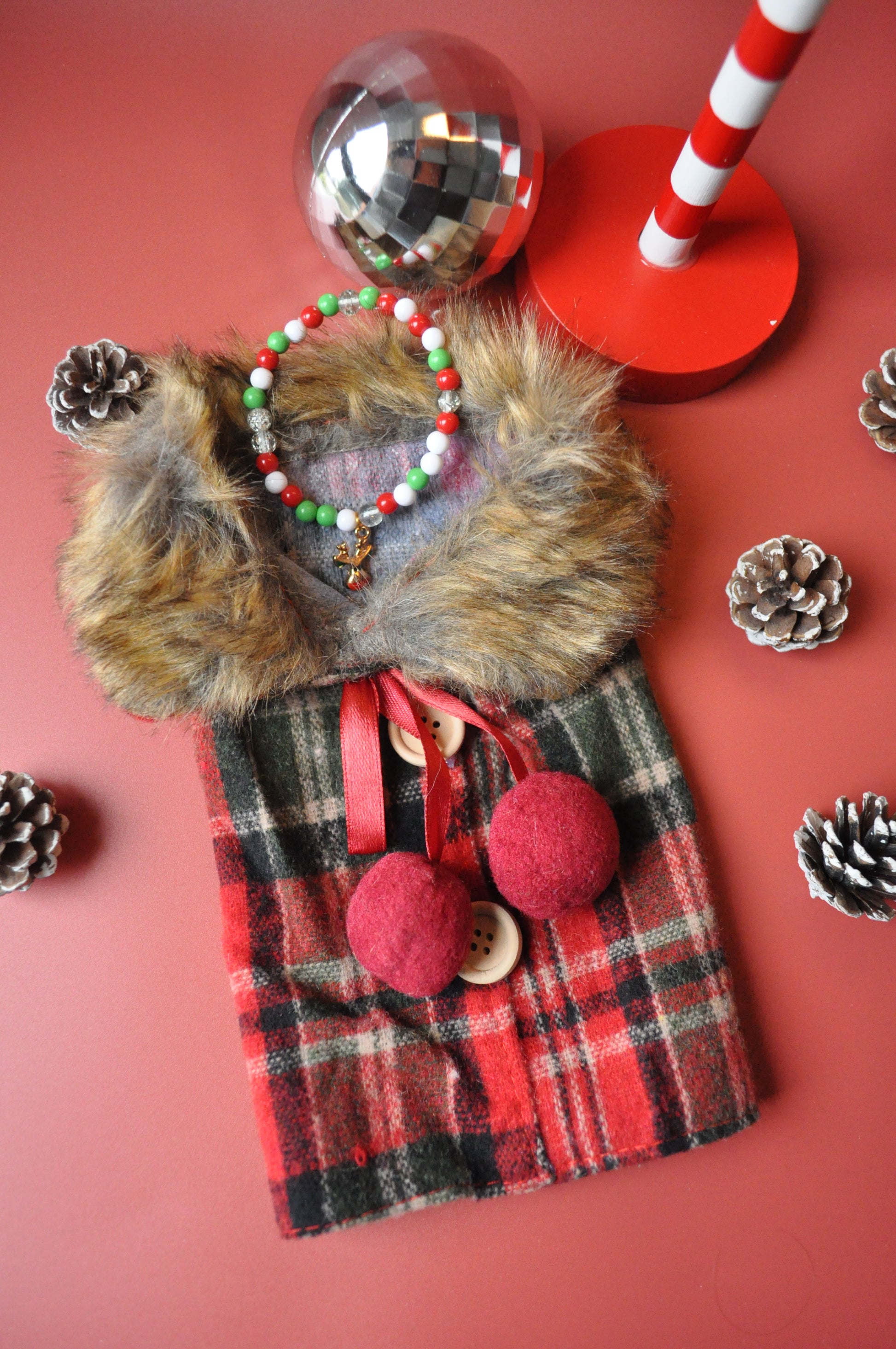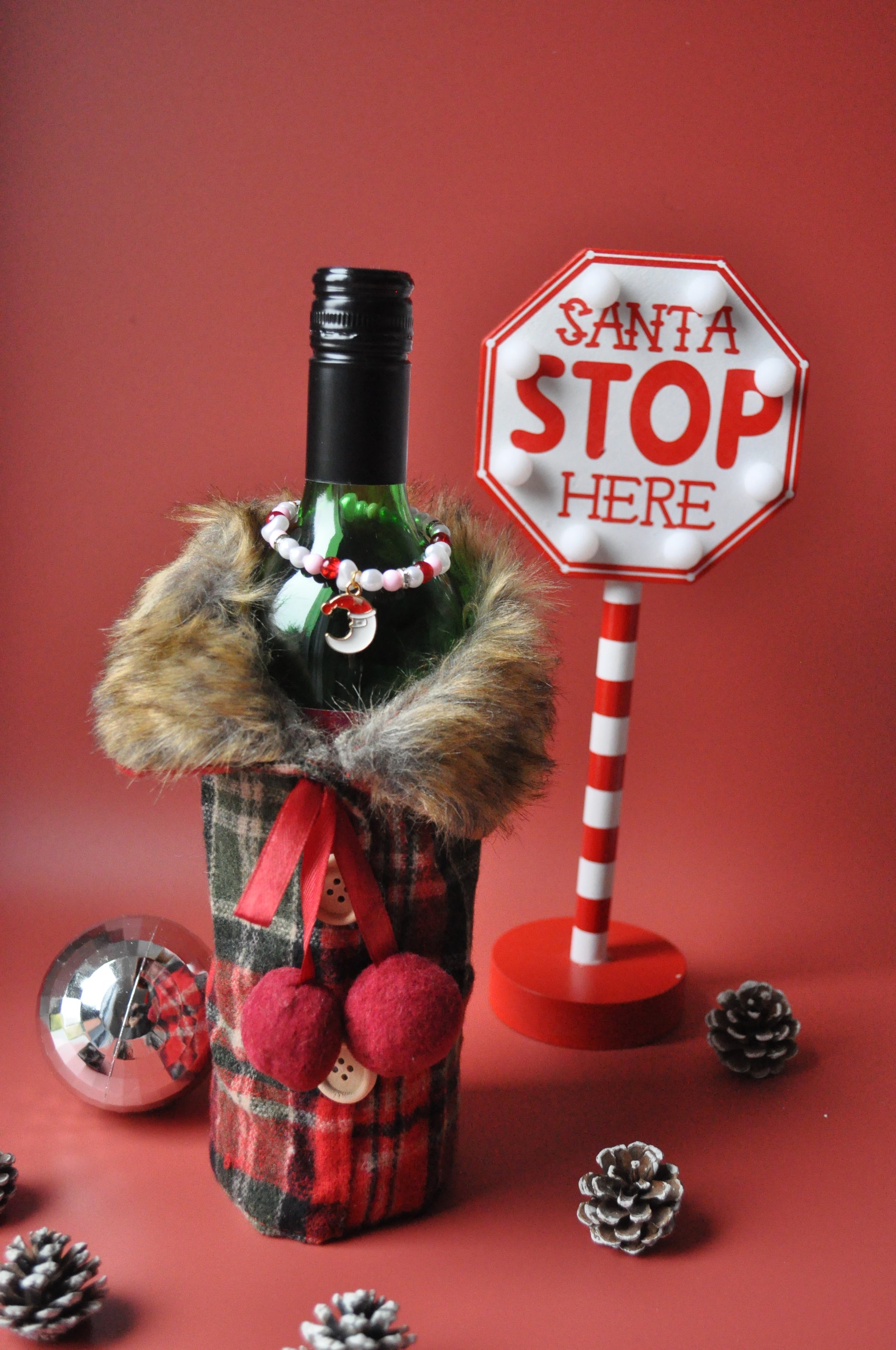 Celebrate the festive season with this charming gift set, perfect for holiday gatherings and thoughtful gifting. The set includes a cosy plaid wine bottle wrap adorned with faux fur and a decorative bottle necklace (which doubles as a stretch bracelet). Enjoy the warm ambience of a scented tealight, all presented in festive packaging. Choose from two bracelet options – a classic red and green theme or a playful pink and red design. Ideal for spreading Christmas cheer!