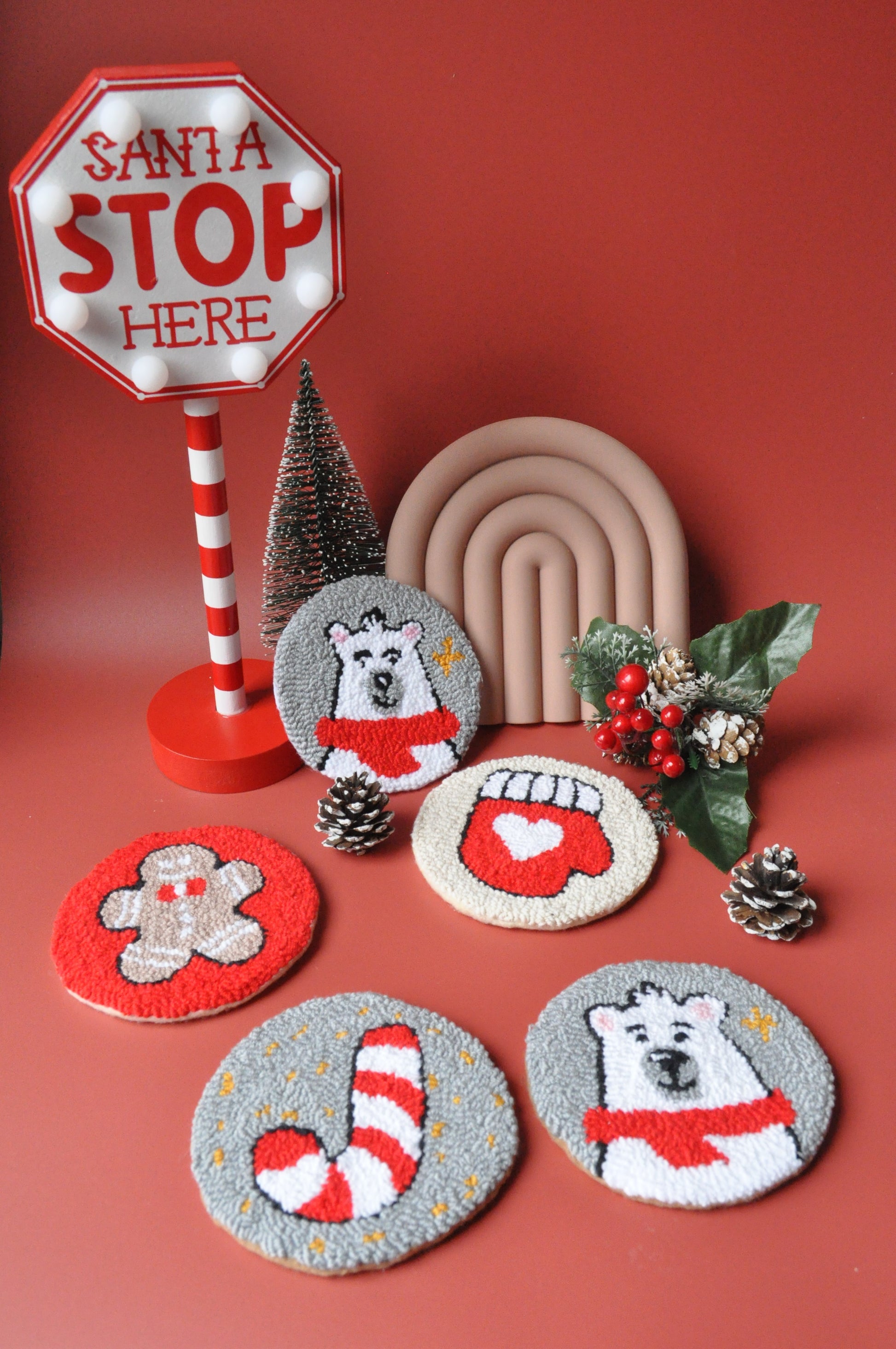 Add a touch of holiday cheer to your home with the Festive Punch Needle Coaster! This Christmas mug rug is perfect for setting your favorite hot cocoa or mulled wine during the holiday season. Handcrafted using traditional punch needle techniques, this coaster features a festive design with vibrant colours that are sure to bring joy to your holiday decor.