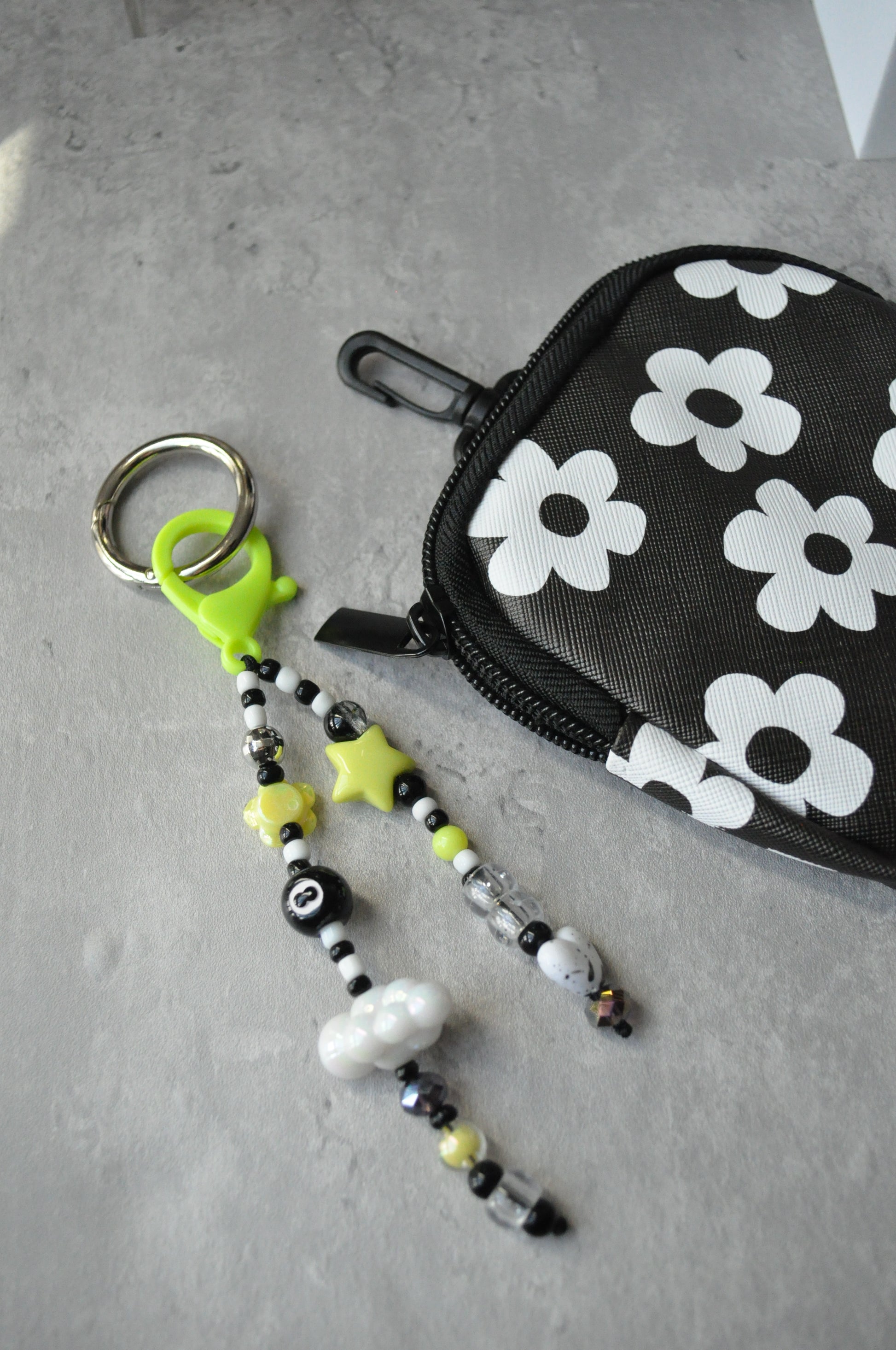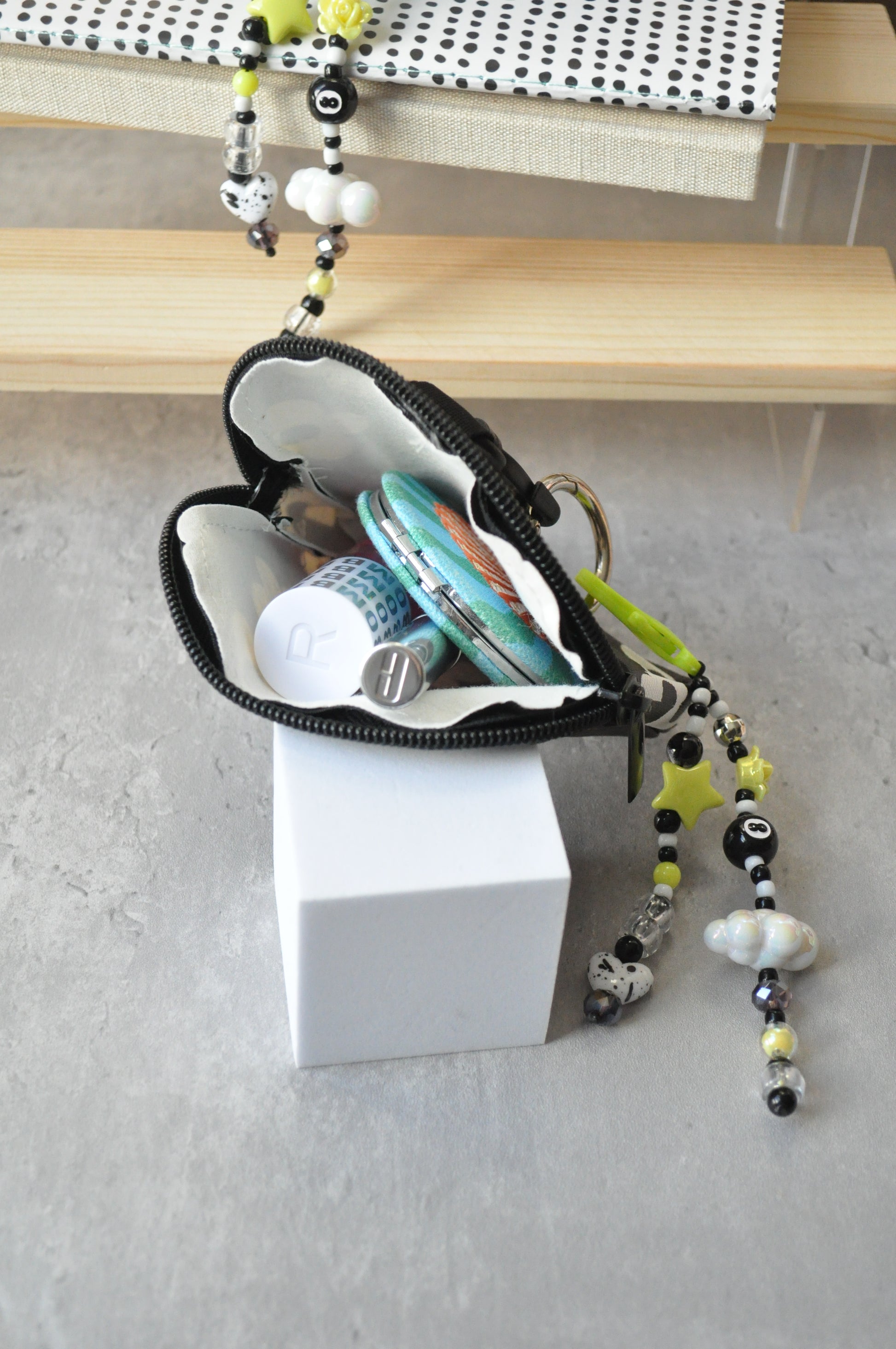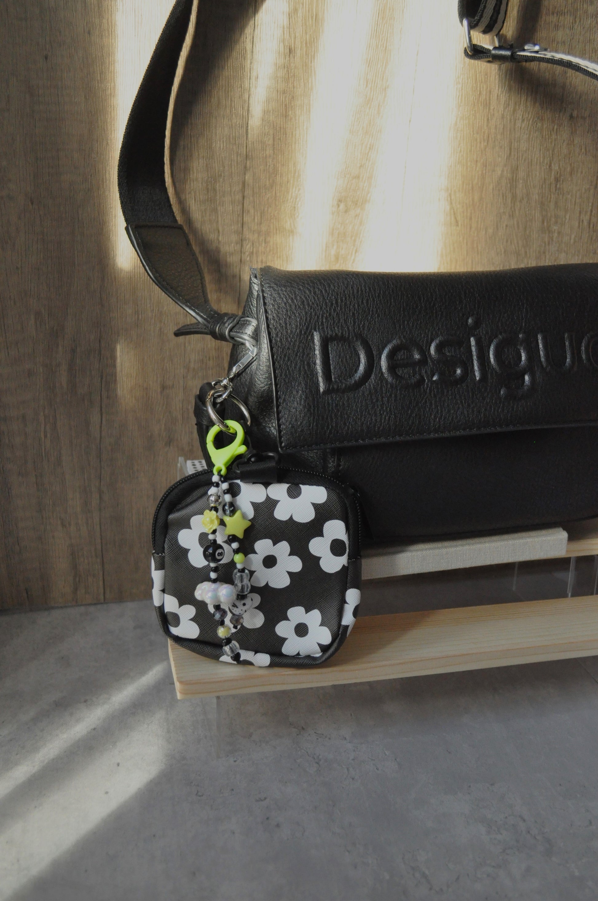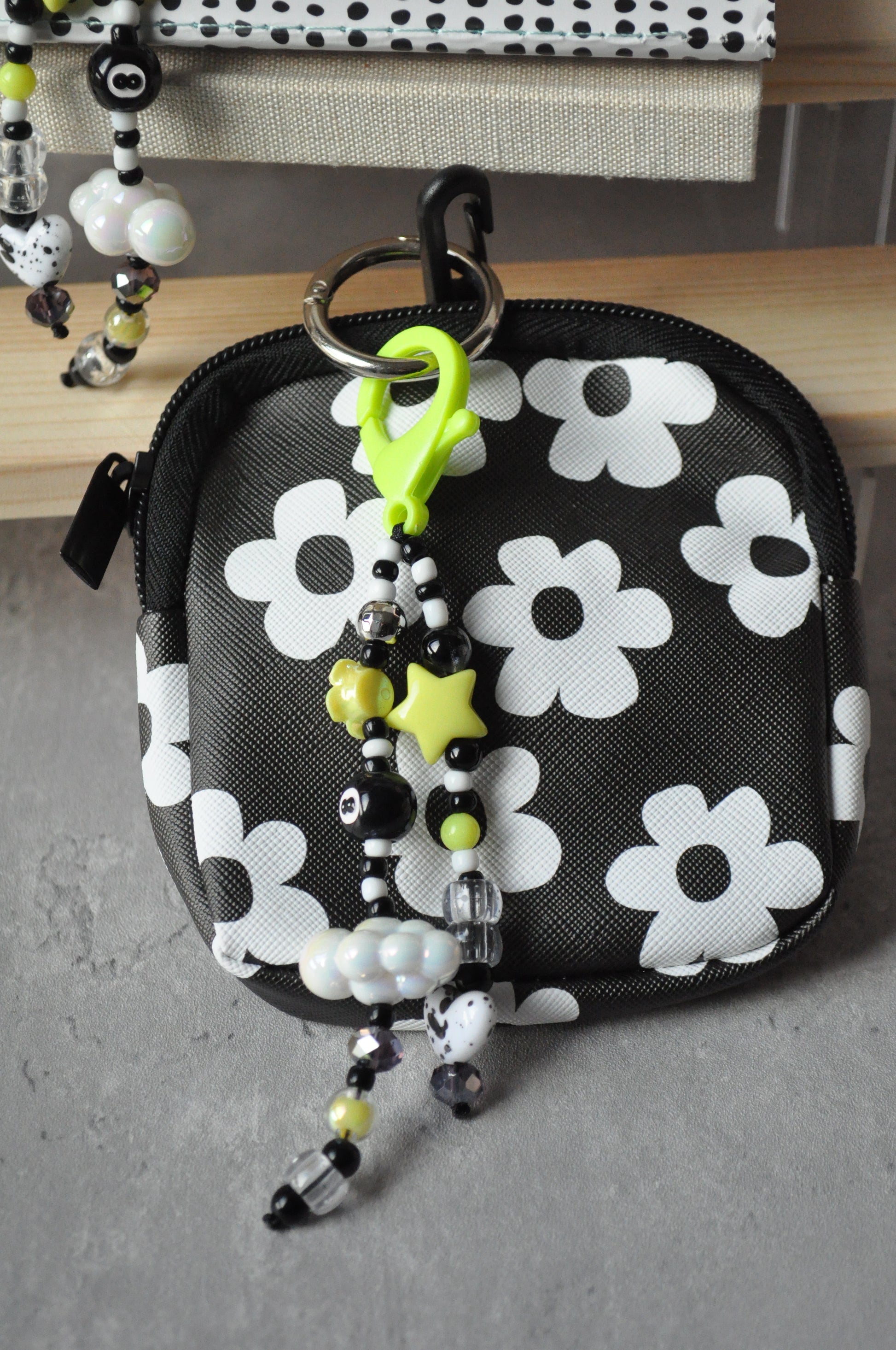 Carry your mini makeup essentials in style with our Floral Pouch Bag Charm. Featuring a chic black-and-white floral pattern, this pouch is not only a trendy accessory but also a practical solution for on-the-go touch-ups. Easily attachable to your bag, it includes a vibrant beaded chain in neon yellow, black and white, making it perfect for keeping your essentials organised while adding a fun flair to your look. Elevate your everyday carry with this stylish and functional pouch, ideal for makeup, keys, or small treasures!