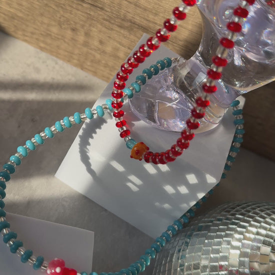 Add a touch of charm to your jewellery collection with our handmade glass bead necklace. Featuring a unique glass mushroom bead at the centre, this necklace is designed with carefully selected beads in vibrant colour combinations. Each piece is crafted with precision, offering a delicate yet eye-catching look. Lightweight and versatile, it’s perfect for layering or wearing on its own for a subtle statement. Whether dressing up or keeping it casual, this one-of-a-kind necklace brings playful elegance to any outfit.