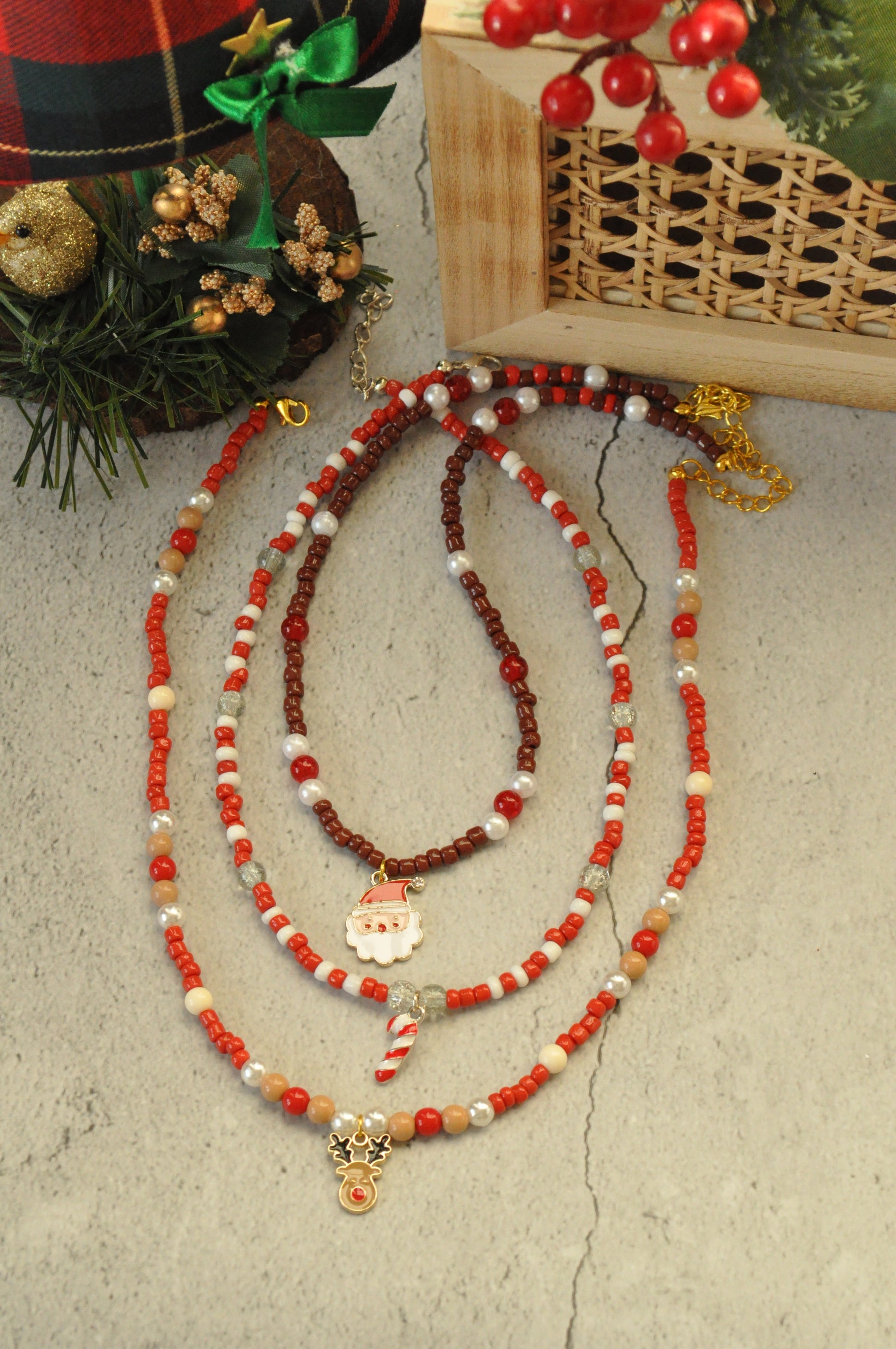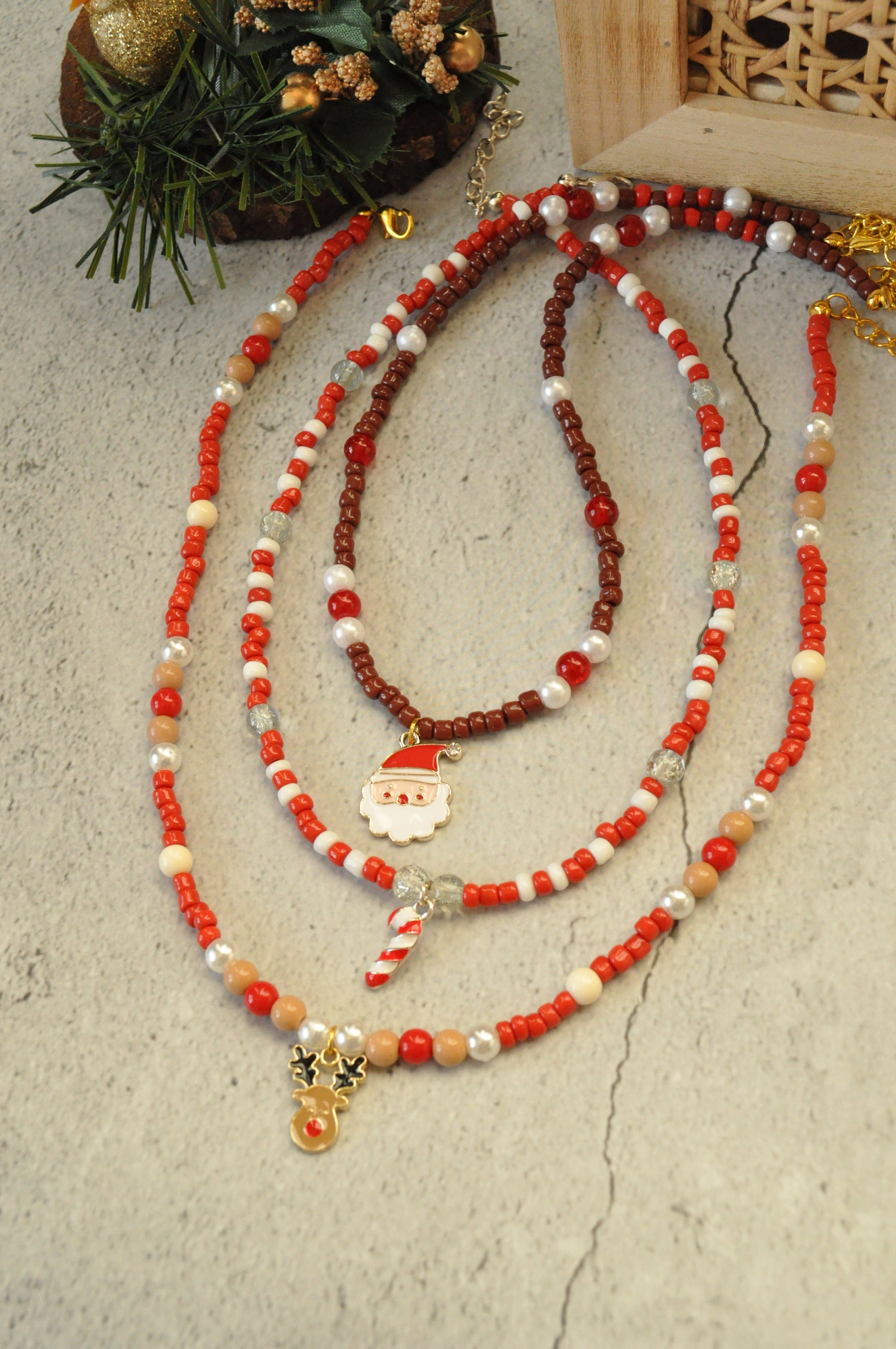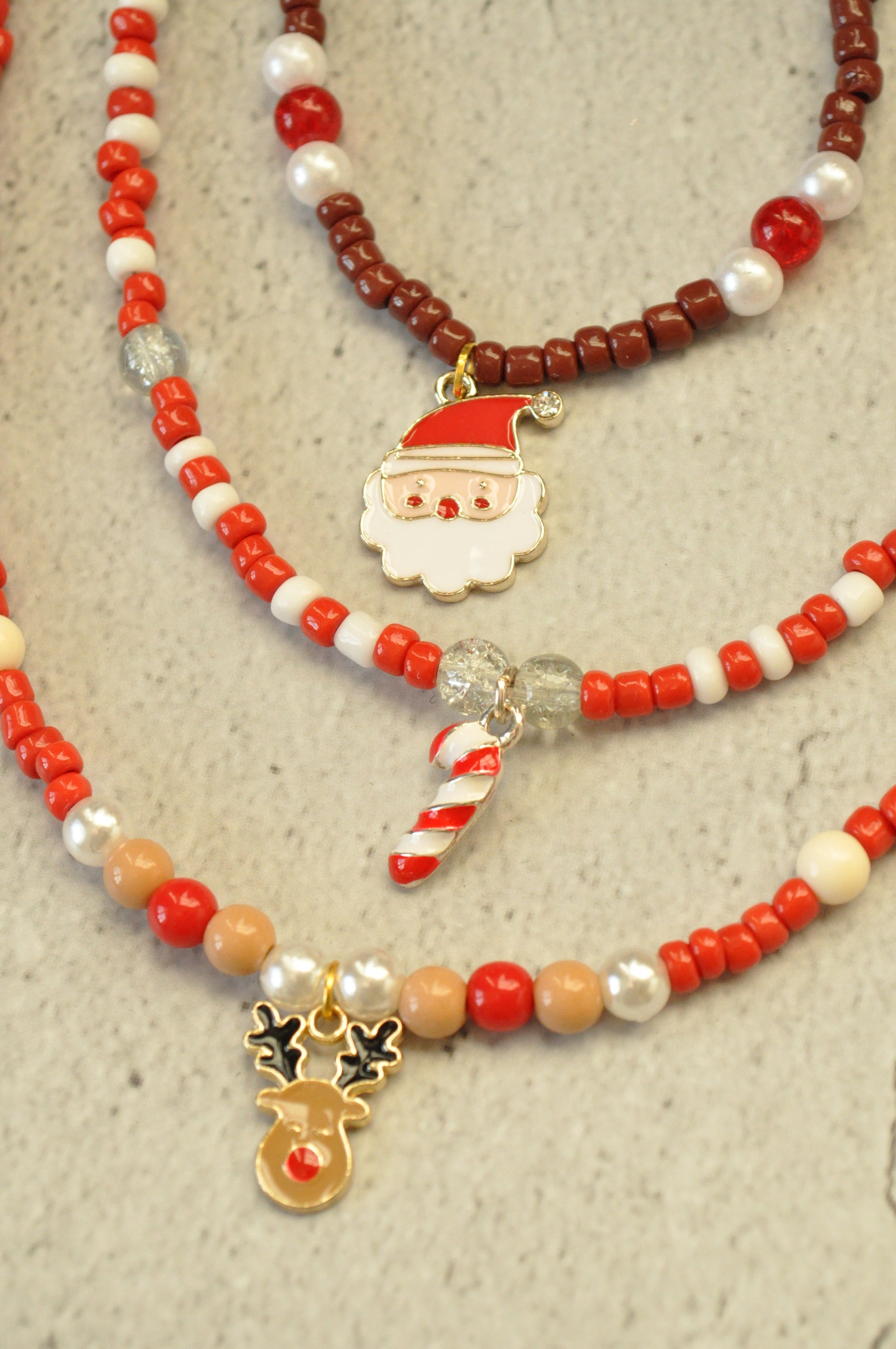 Looking for the perfect gift for Christmas? Look no further than our Christmas reindeer necklace, beaded Santa necklace, and candy cane necklace! Made with high-quality beads and handcrafted, these necklaces are sure to put a smile on anyone's face. Whether you're giving it as a stocking filler or a Secret Santa gift, these pieces are sure to impress. So don't wait - get your Christmas necklace today!
