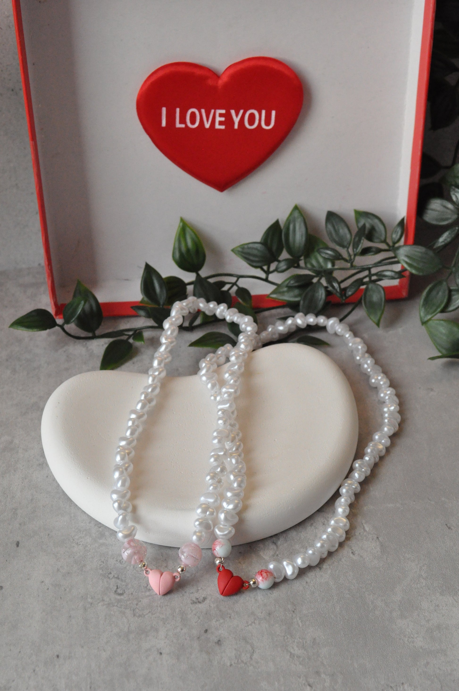 - Faux Pearl Beads, Magnetic Heart Clasps