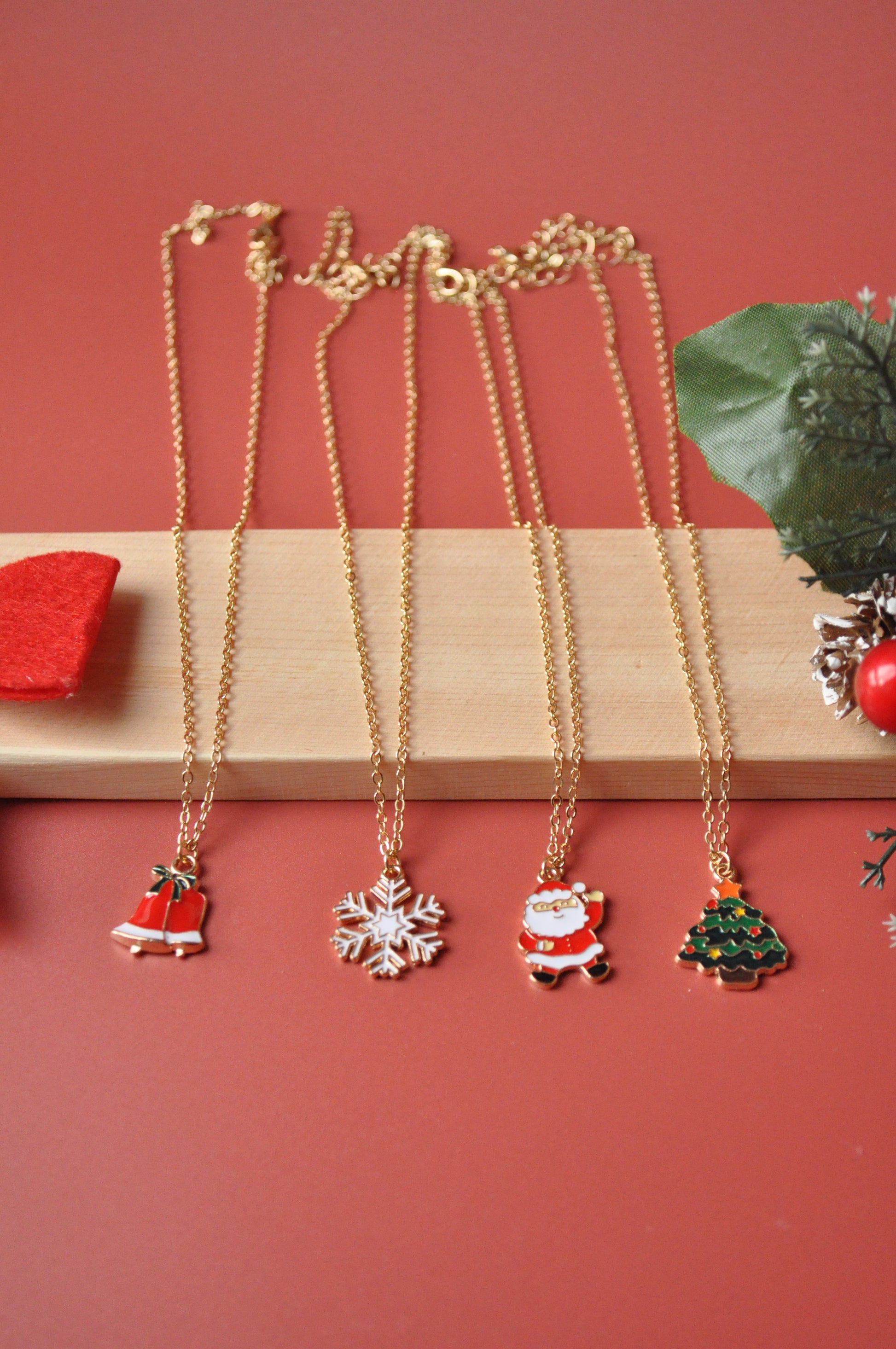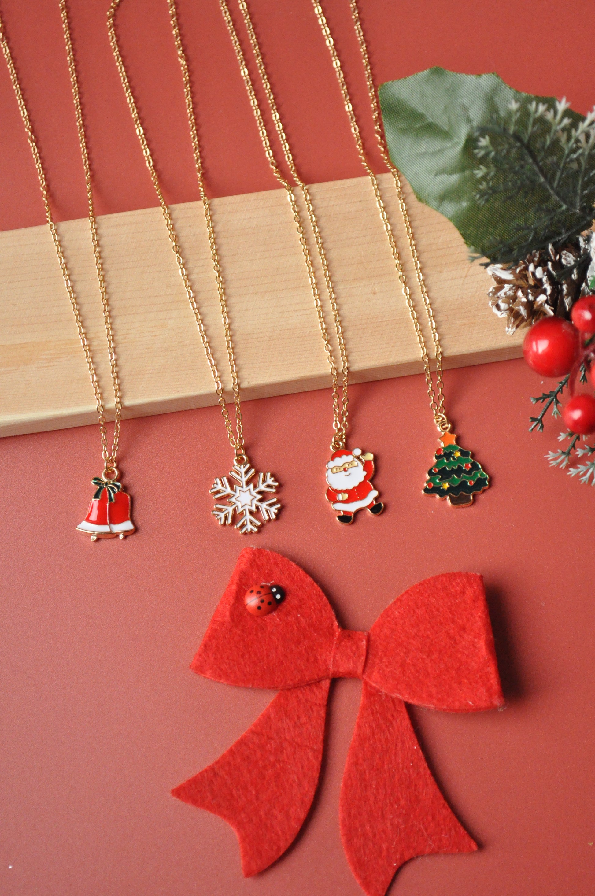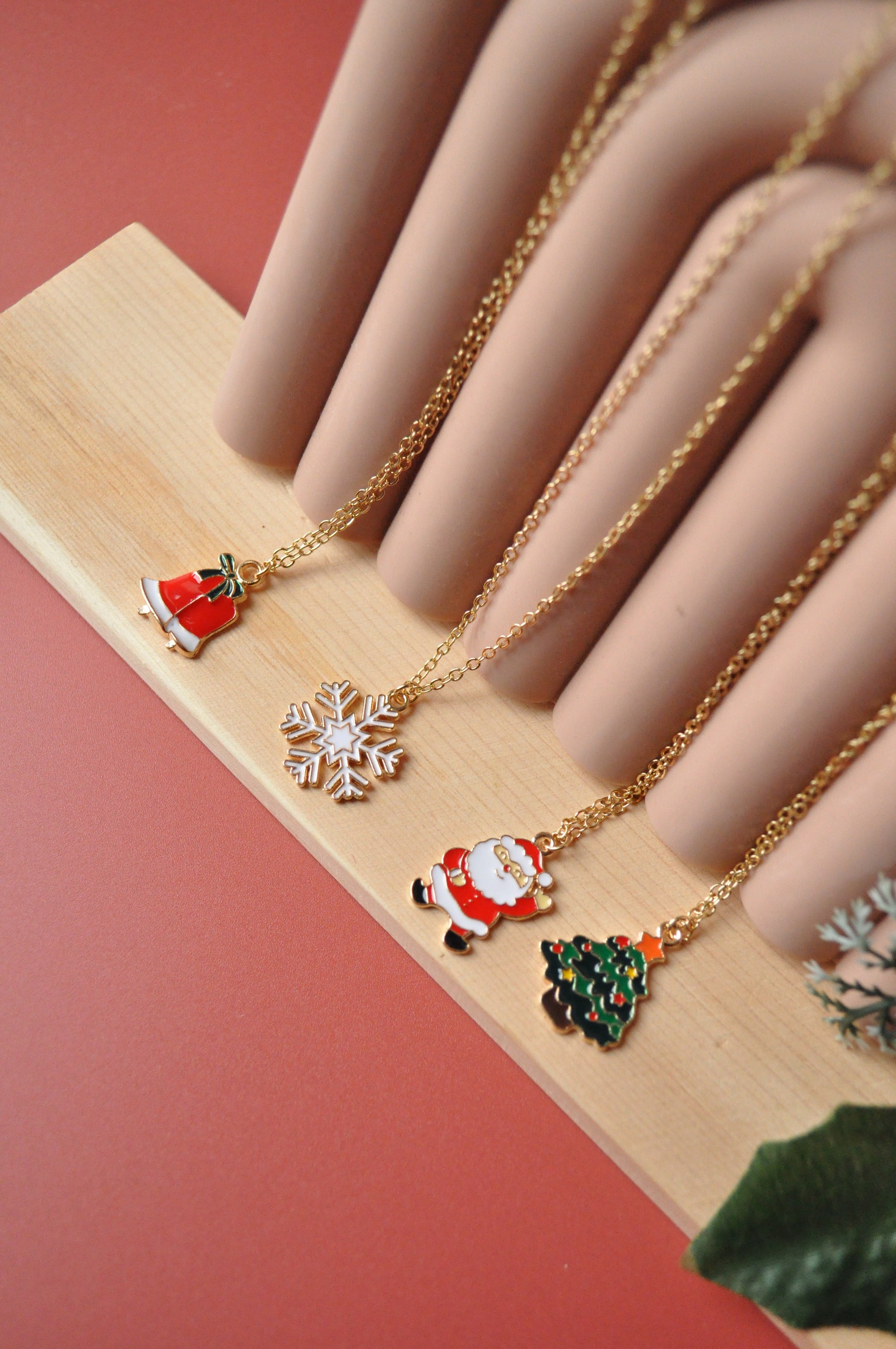 Celebrate the season with festive charm! These Christmas necklaces feature beloved holiday icons—a joyful Santa, sparkling snowflake, classic tree, and holly bell. Perfect for gifting or adding holiday cheer to any outfit, each piece is crafted with care to capture the magic of Christmas.