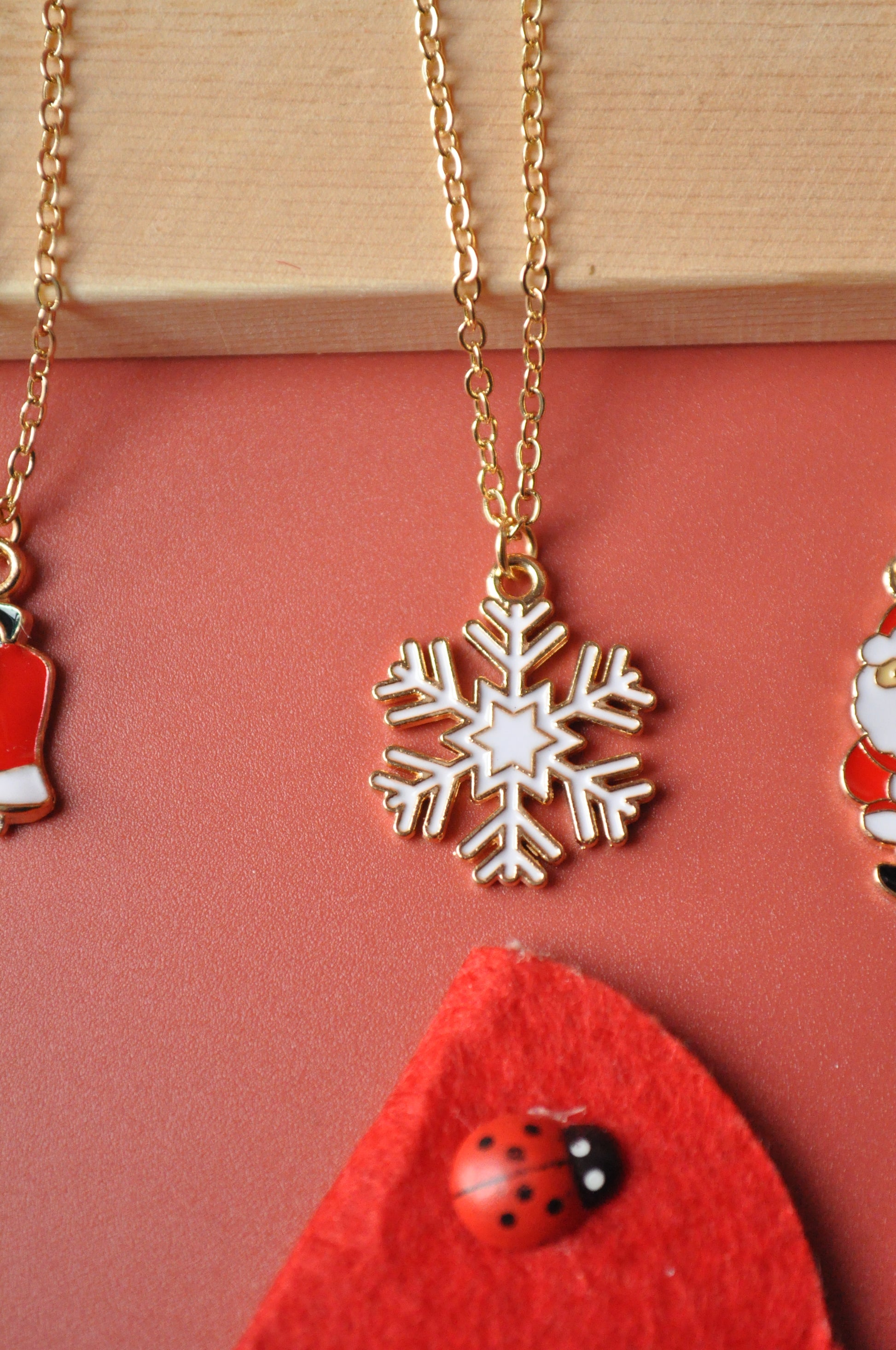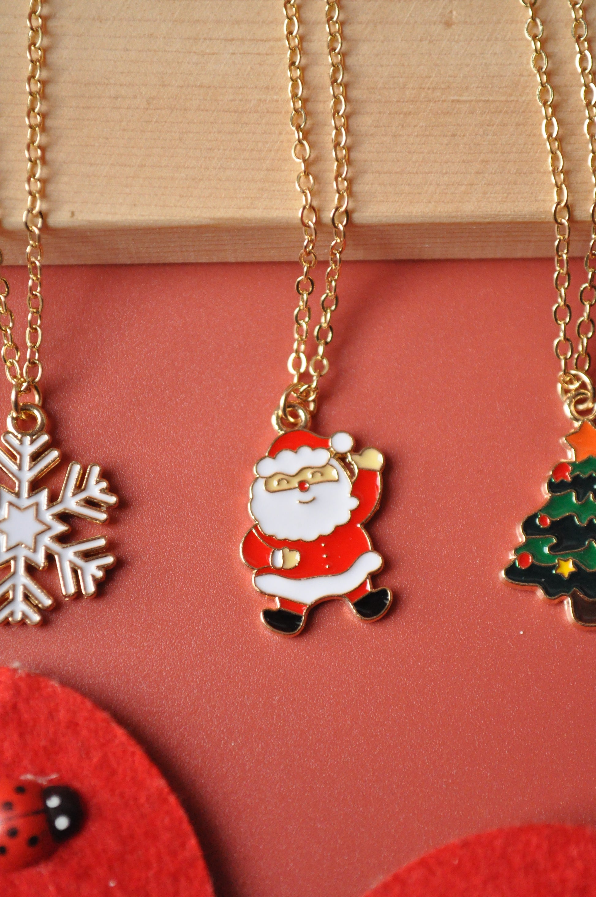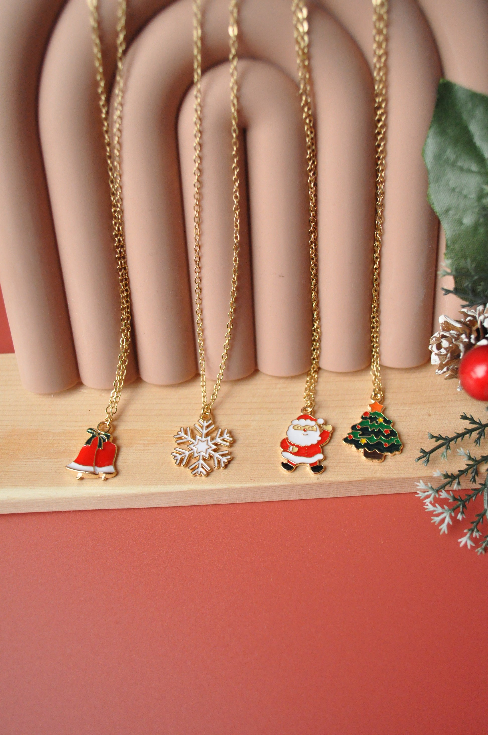 Celebrate the season with festive charm! These Christmas necklaces feature beloved holiday icons—a joyful Santa, sparkling snowflake, classic tree, and holly bell. Perfect for gifting or adding holiday cheer to any outfit, each piece is crafted with care to capture the magic of Christmas.