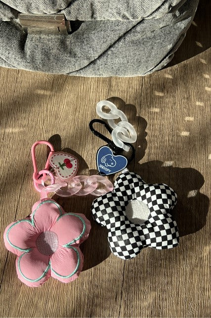 Add a playful touch to your keys or bag with this charming daisy design in checkered black or pastel pink. Lightweight, durable, and perfect for everyday use.