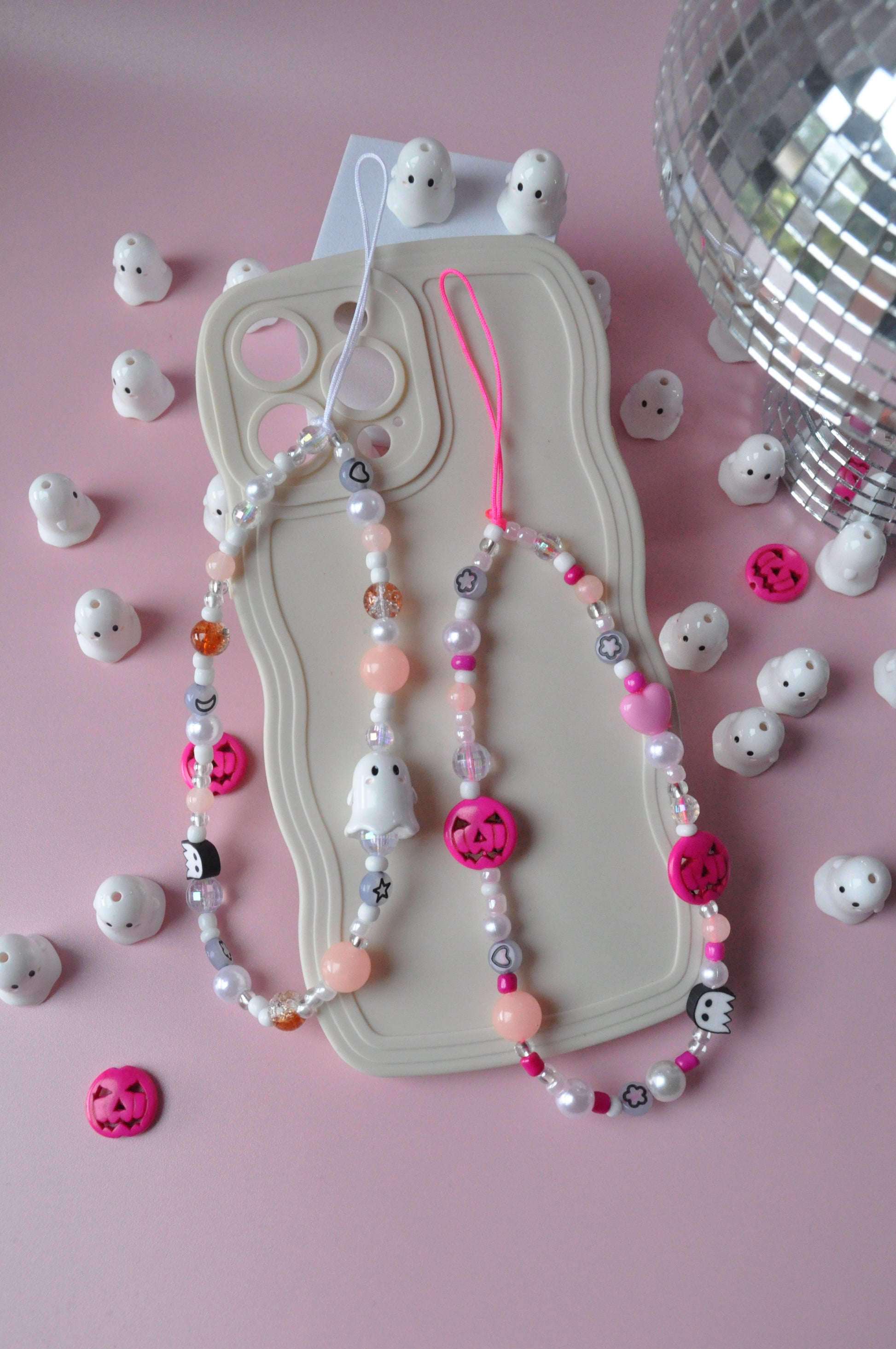 Get ready for spooky season with our personalised Halloween phone charms! The Hot Pink Pumpkin Charm features vibrant pumpkin beads paired with dreamy pastels, while the Pastel Ghost Charm brings a delicate touch with whimsical ghost beads. Both charms include glow-in-the-dark beads for a subtle, enchanting glow, adding a touch of magic to your phone. Personalise them with your initials for a unique twist, making these lightweight yet durable accessories both cute and functional. Embrace Halloween fun and style while keeping your phone secure and charming!