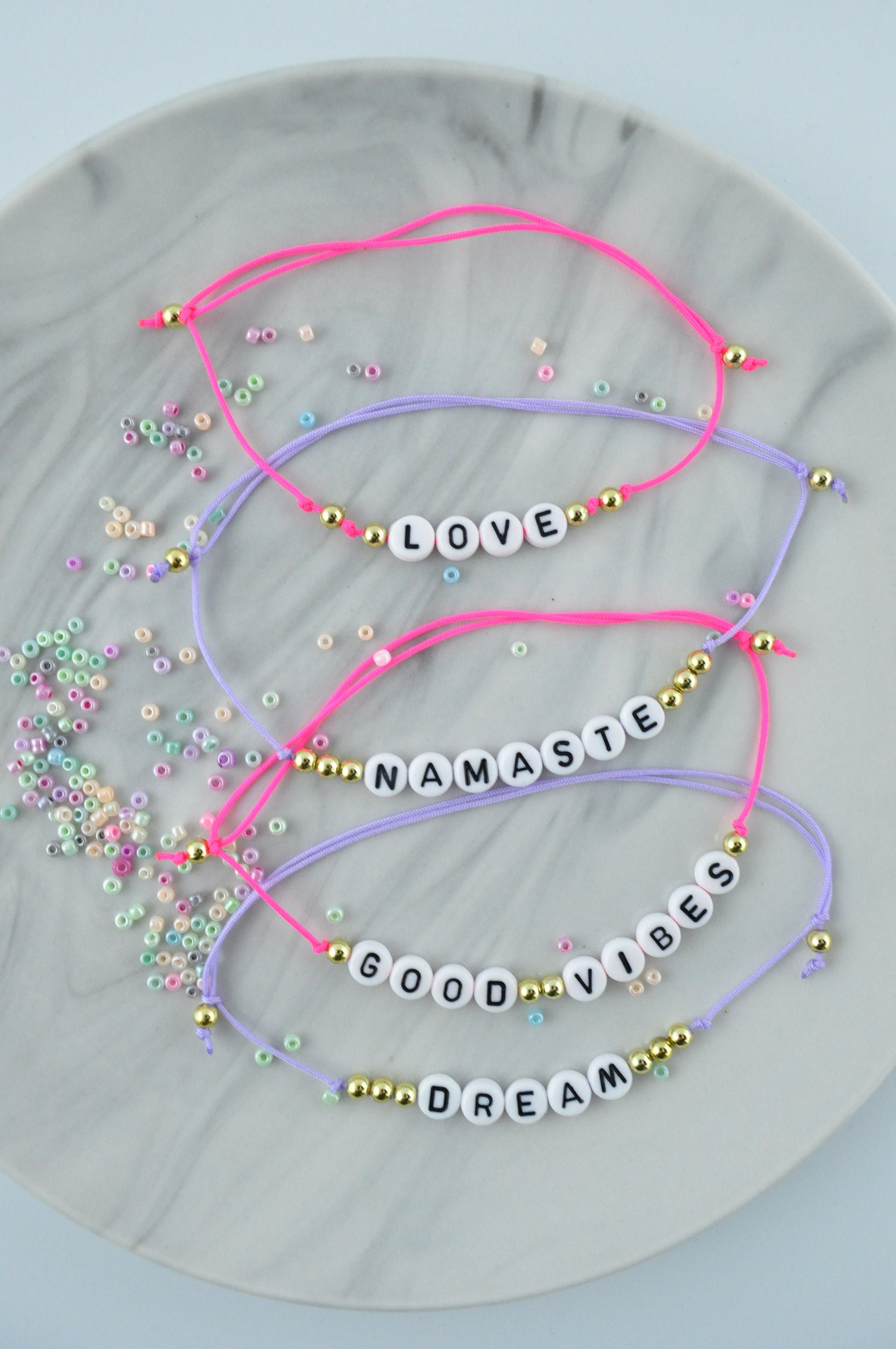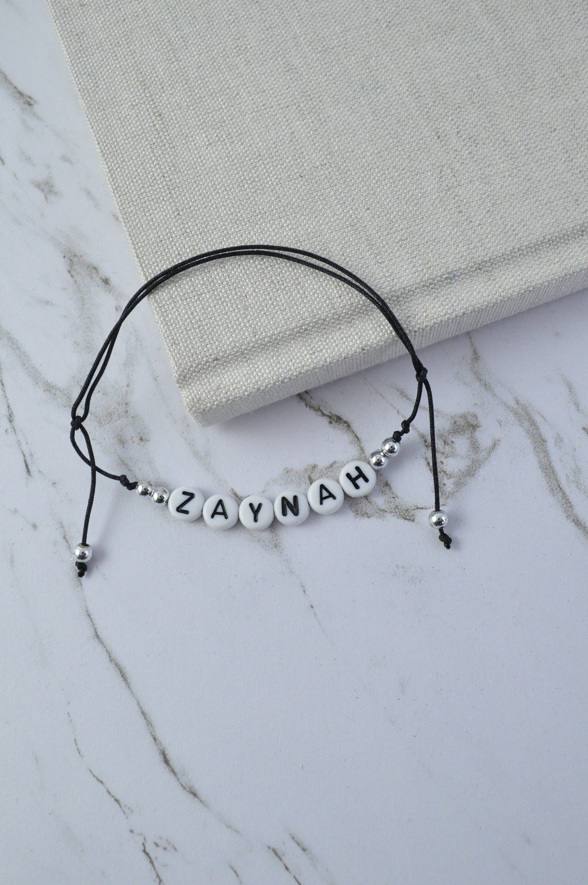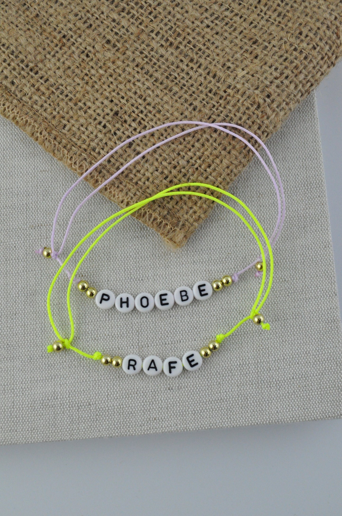 This personalised name bracelet features a simple yet adjustable sliding rope design, making it easy to wear and adjust to your perfect fit. With gold and silver spacer beads and the option to select your favourite thread colours, it offers both elegance and versatility. Handmade with care, this bracelet can be worn every day or given as a thoughtful, customised gift for someone special.