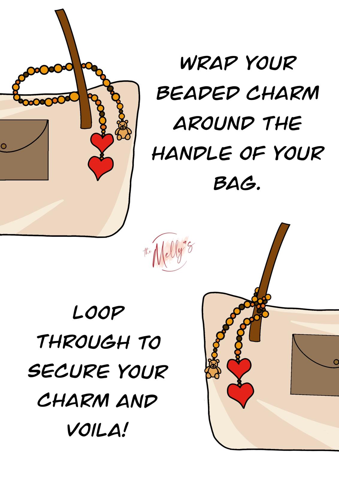With its versatile design, using our bag charm is a breeze. Simply wrap the beaded charm around the handle of your bag and loop it through to secure. In just seconds, you can elevate your bag with a playful accent that reflects your unique style. Whether you're headed to work, running errands, or enjoying a night out, this adorable charm is sure to catch the eye and spark joy wherever you go.