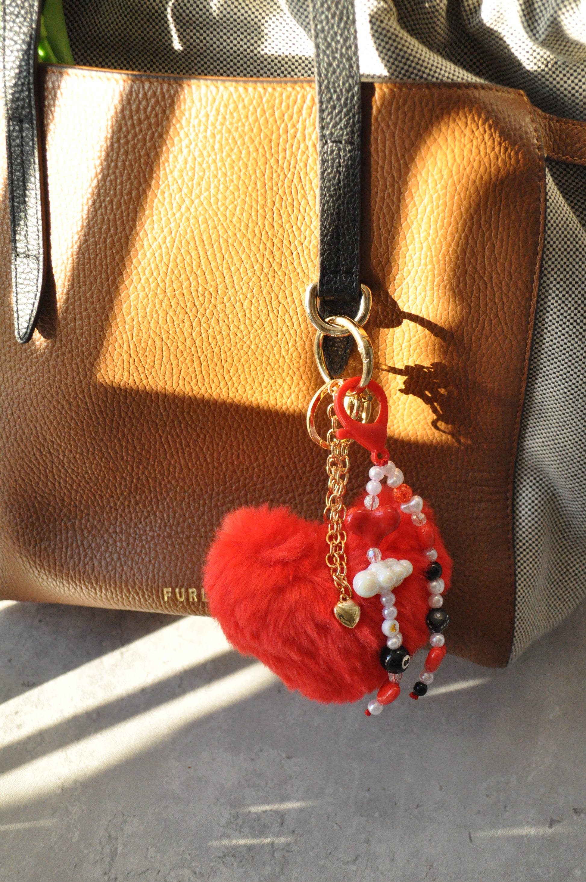 Add a touch of charm to your accessories with this versatile handmade beaded bag charm. Featuring a detachable gold chain bracelet with a toggle clasp, you can easily wear it as a bracelet or keep it as a stylish bag charm or keychain. Designed with a mix of red, black, and pearl beads, including heart accents, this piece makes a perfect personalised gift. Each charm is customisable, allowing you to add a unique touch to match your style. Ideal for handbags, backpacks, or keys, it's a multi-functional accessory that blends fashion with functionality.