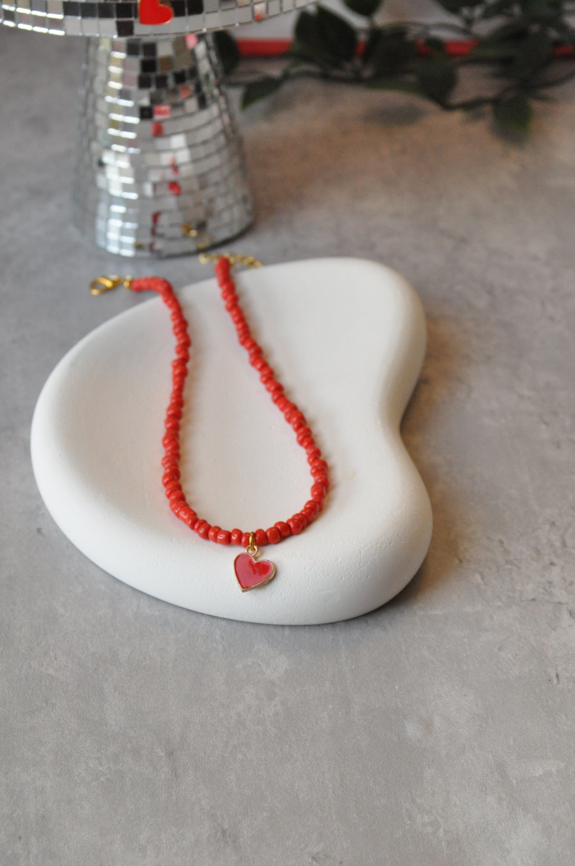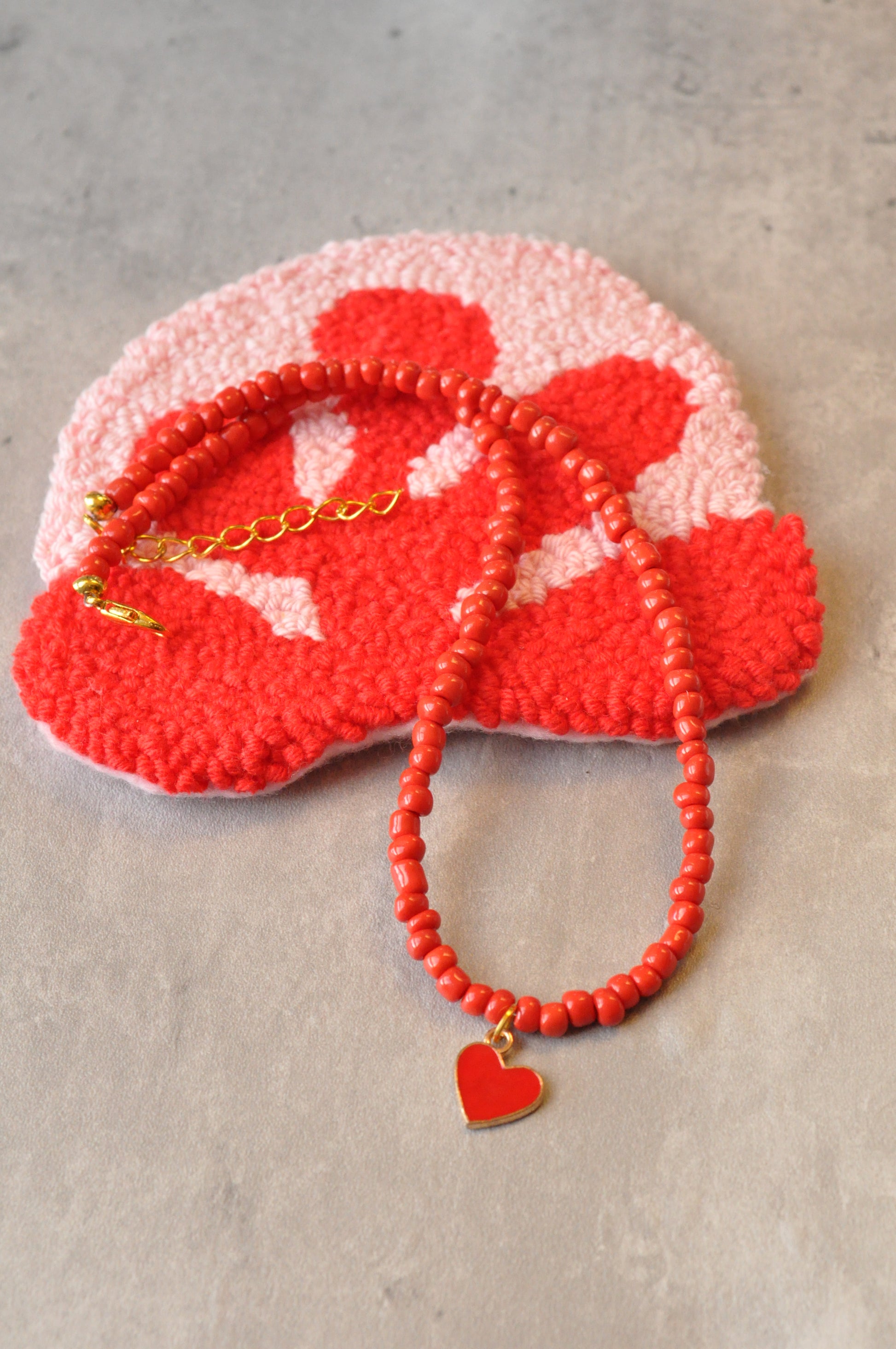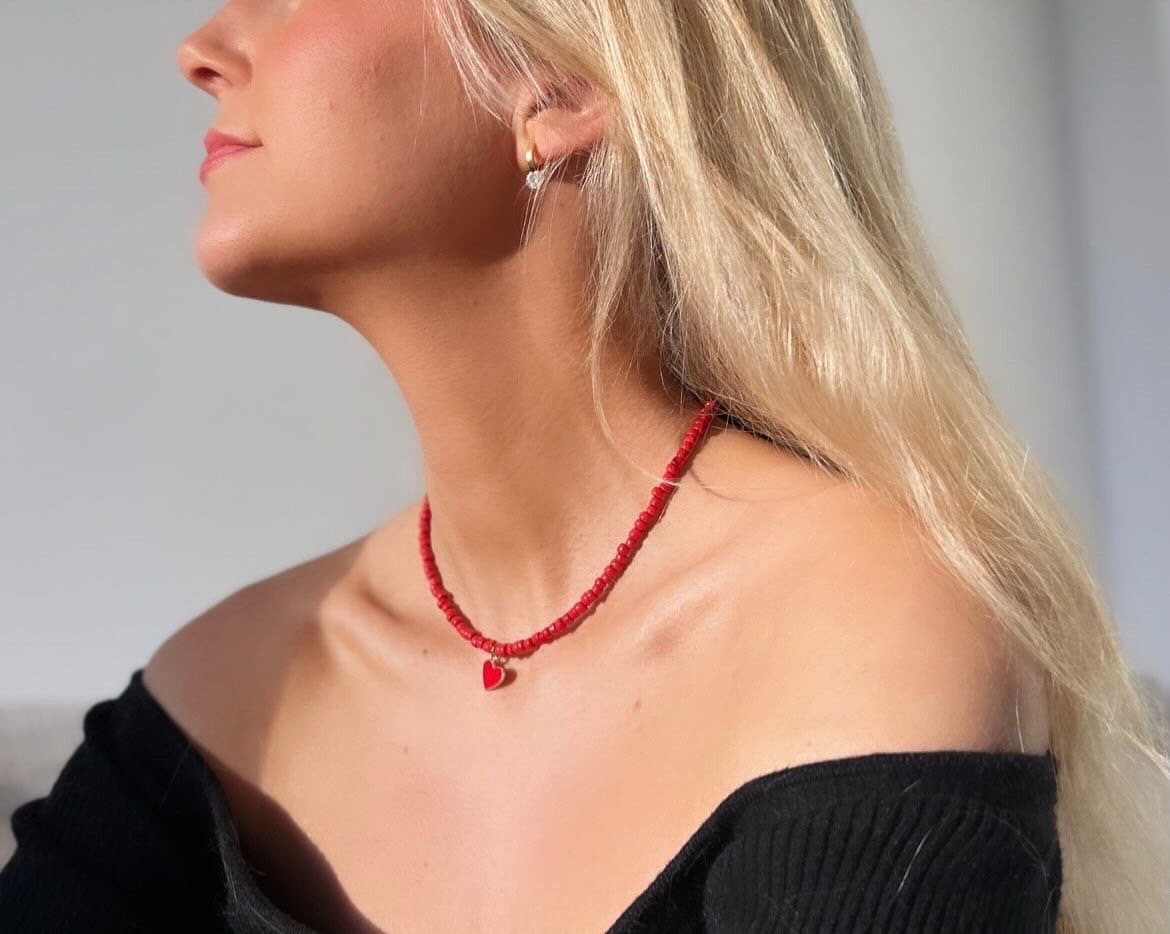 Red Heart Beaded Necklace