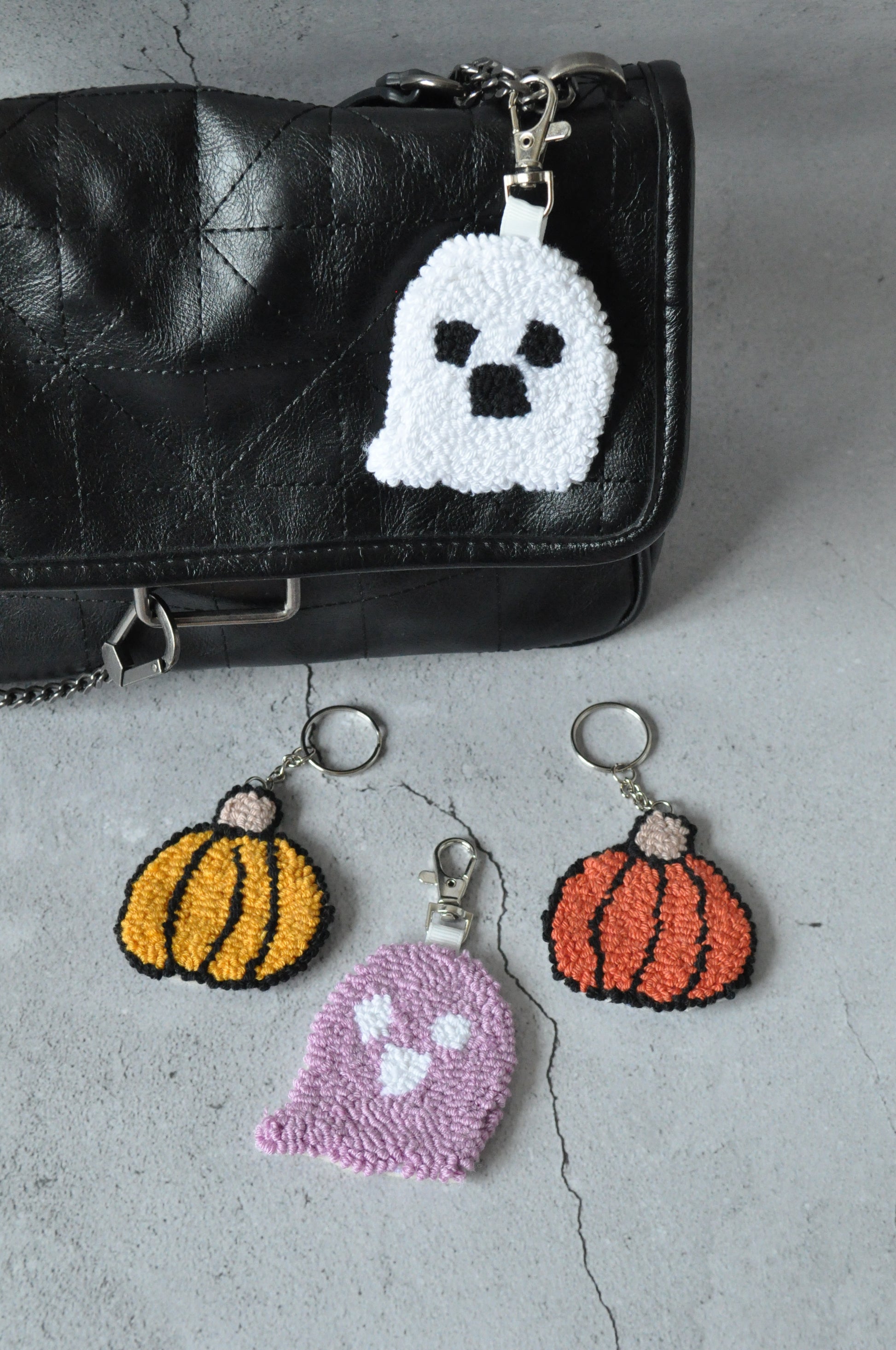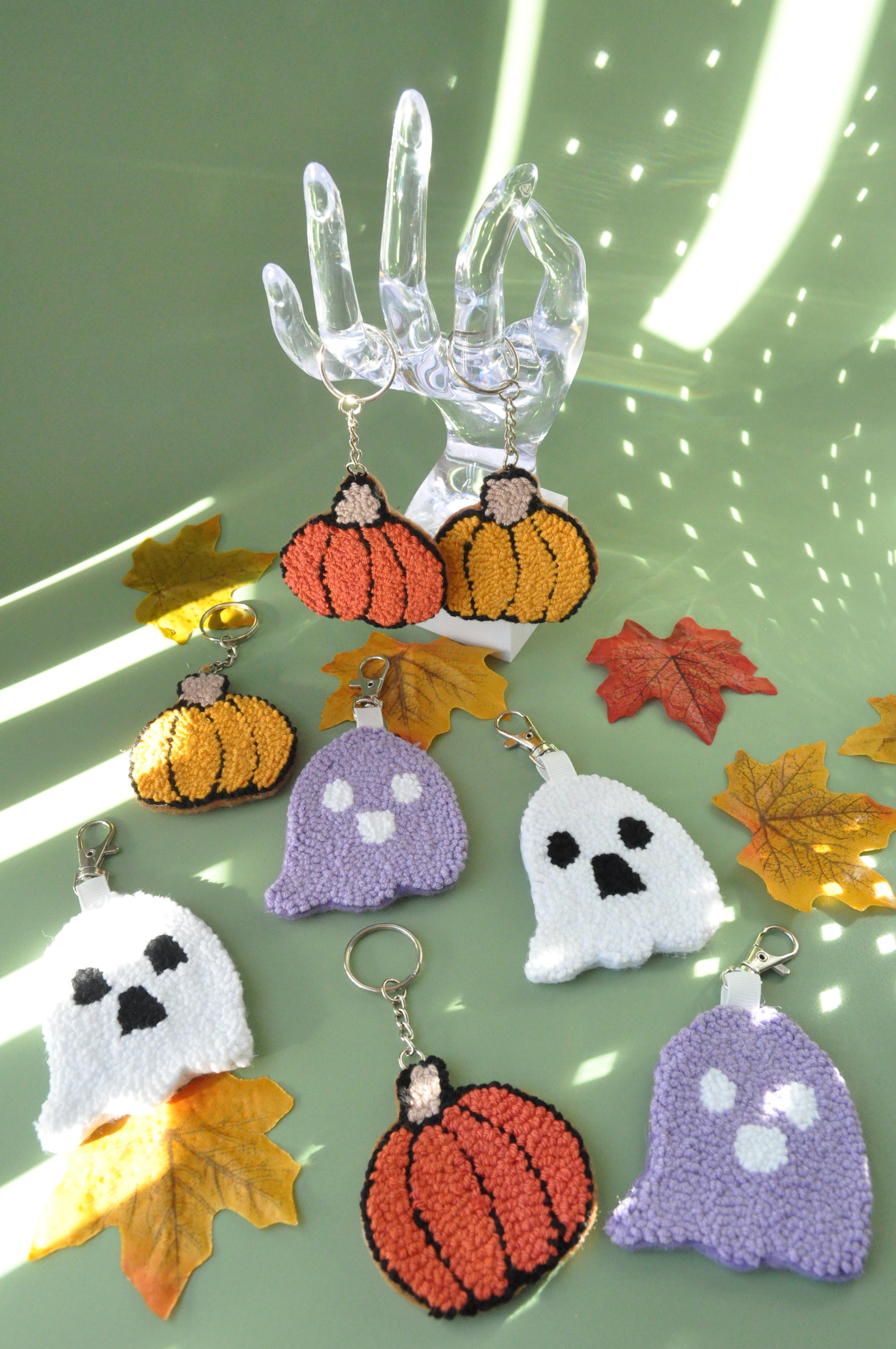 Elevate your style and embrace the enchanting allure of Halloween with our Handmade Punch Needle Keychains. Meticulously crafted punch needle keychains boast intricate designs of spooky ghosts and charming pumpkins that capture the essence of the season. The punch needle technique adds depth and texture, turning each keychain into a mini work of art that's as delightful to touch as it is to look at.