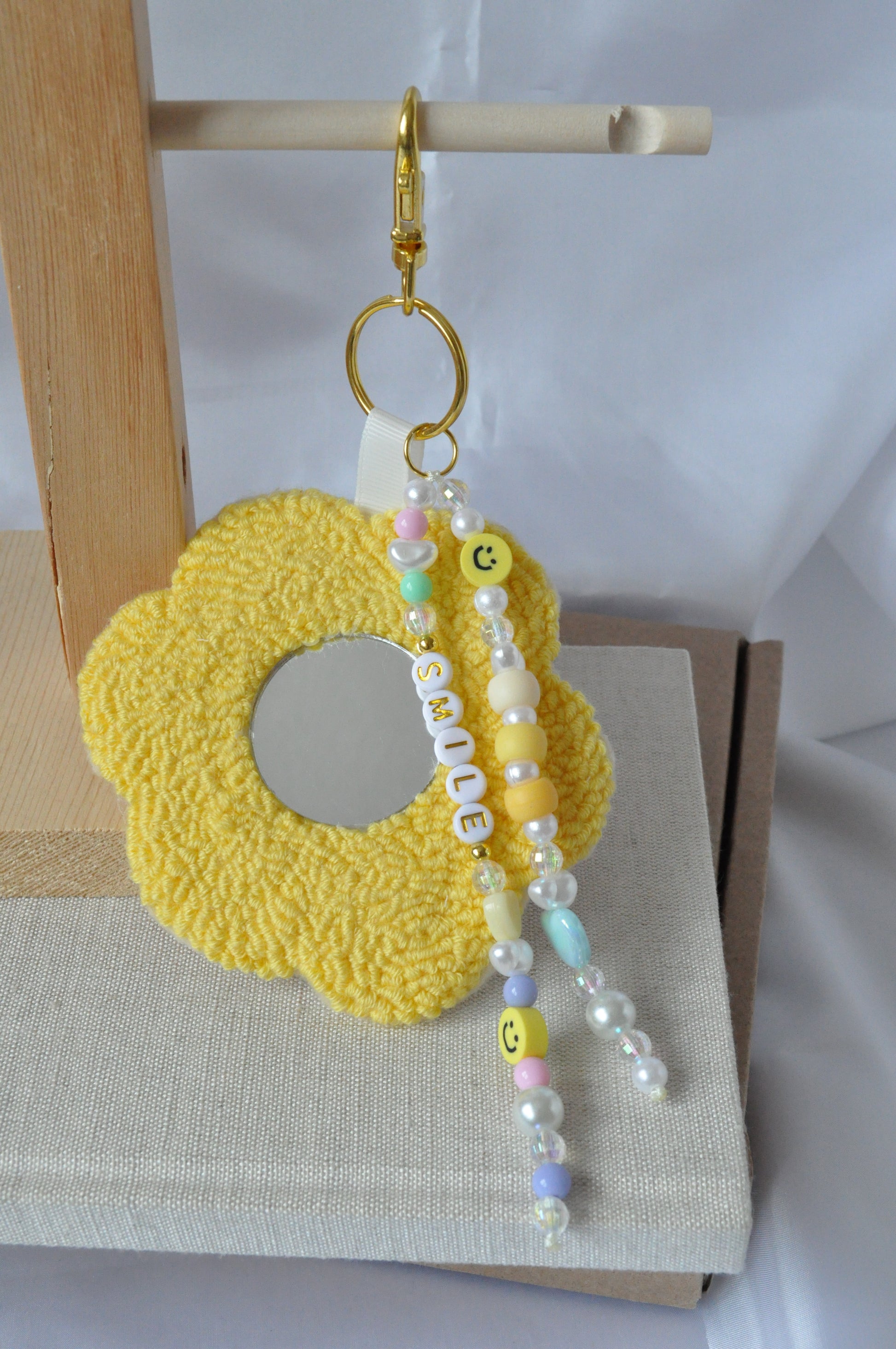 Add charm and practicality to your essentials with our Tufted Daisy! Not only is it perfect for your keys or purse, but it can also serve as a stylish bag tag. The beaded chain adds a personalised touch, making it a great gift for friends and loved ones. Handmade with love, this keychain features a handy pocket mirror, ensuring you're always prepared on the go. Embrace the Y2K style and elevate your accessories today!
