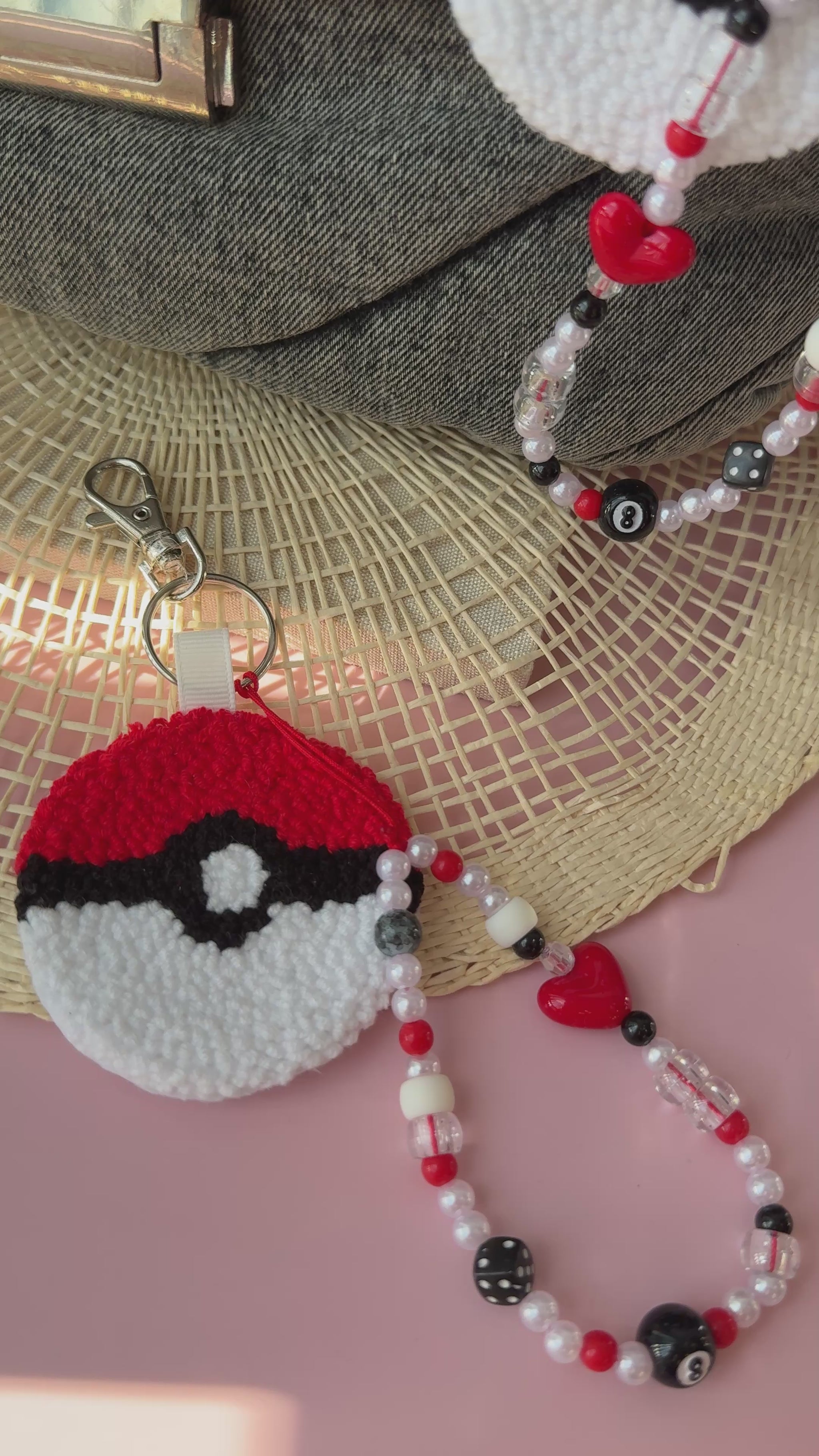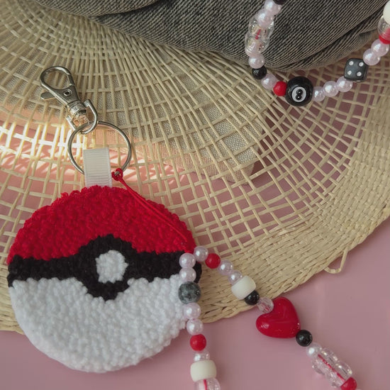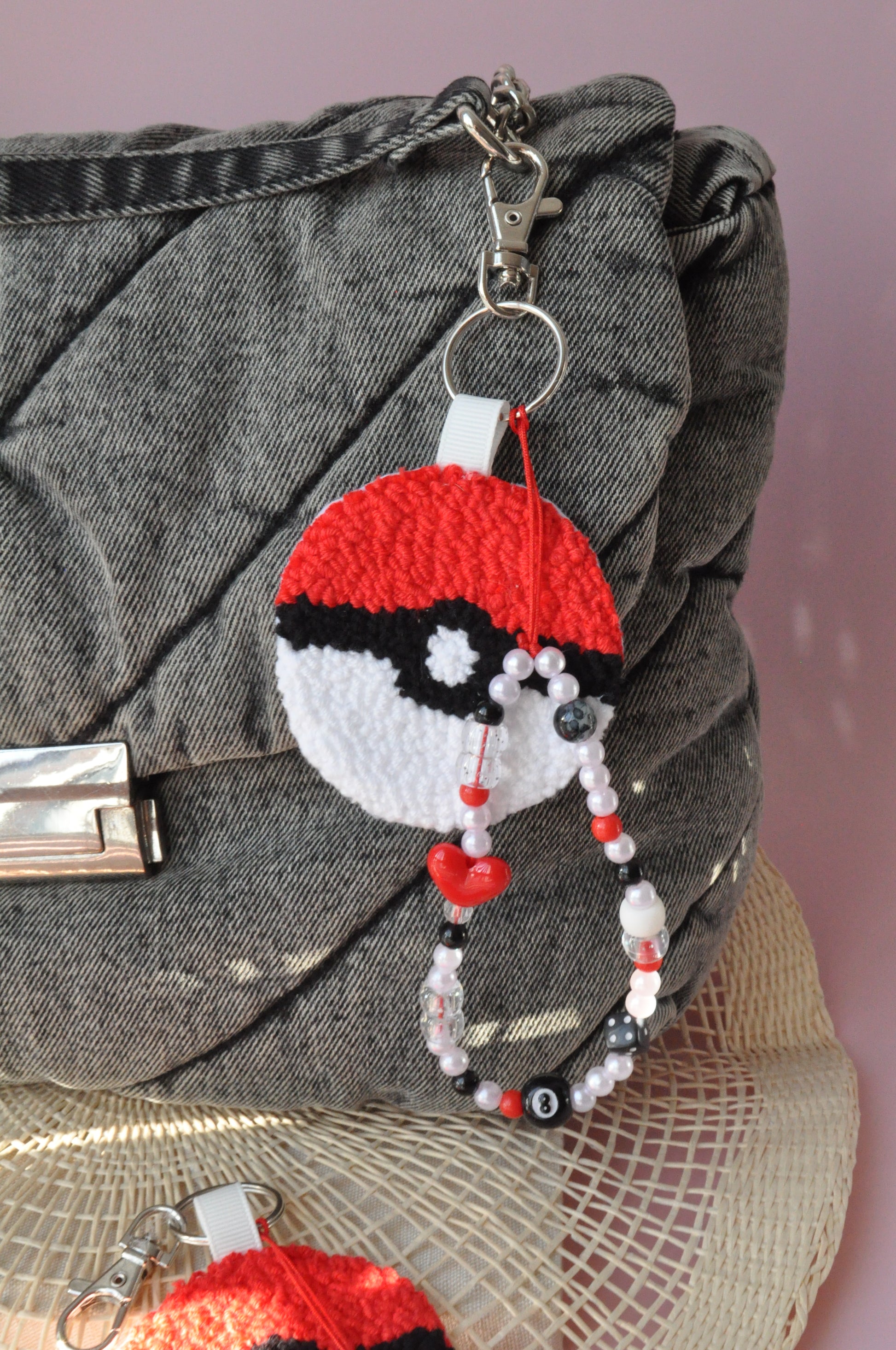 Level up your look with our handmade Pokémon bag charm, featuring a tufted Pokéball and colourful beads. A playful accessory for anime, gaming and kawaii fans.