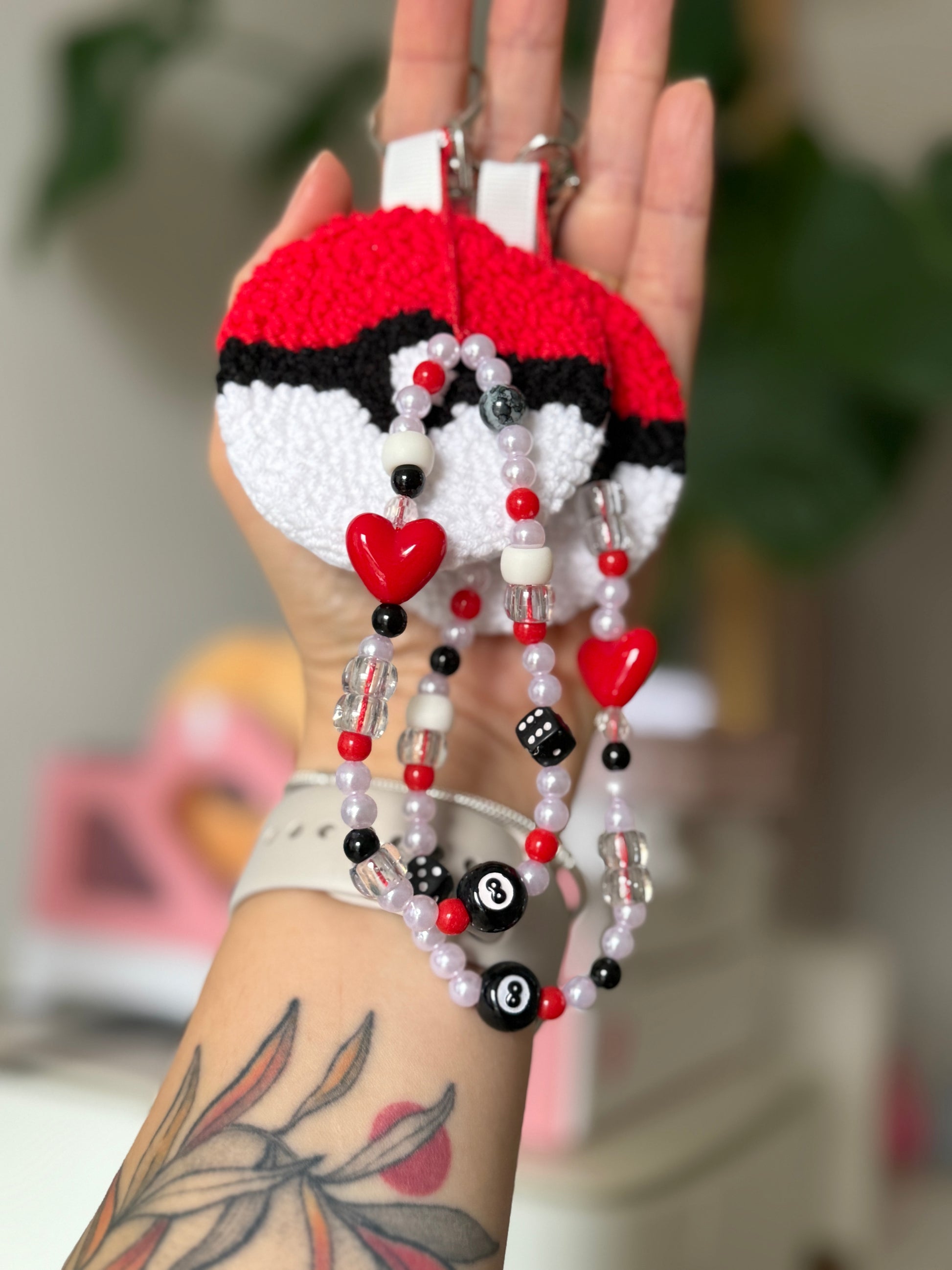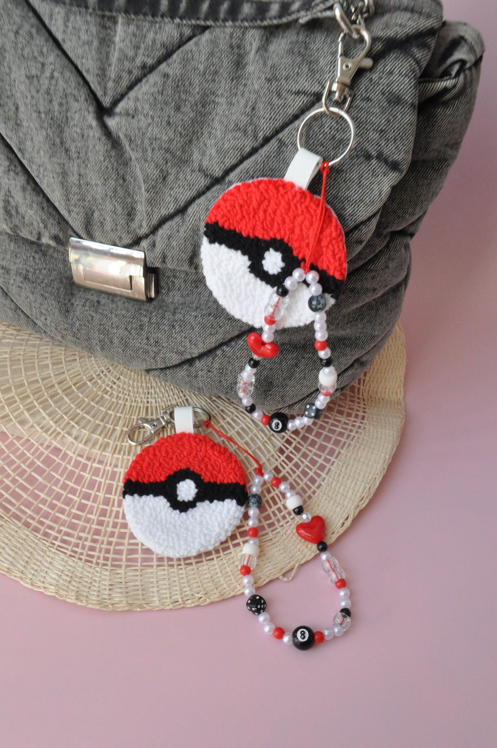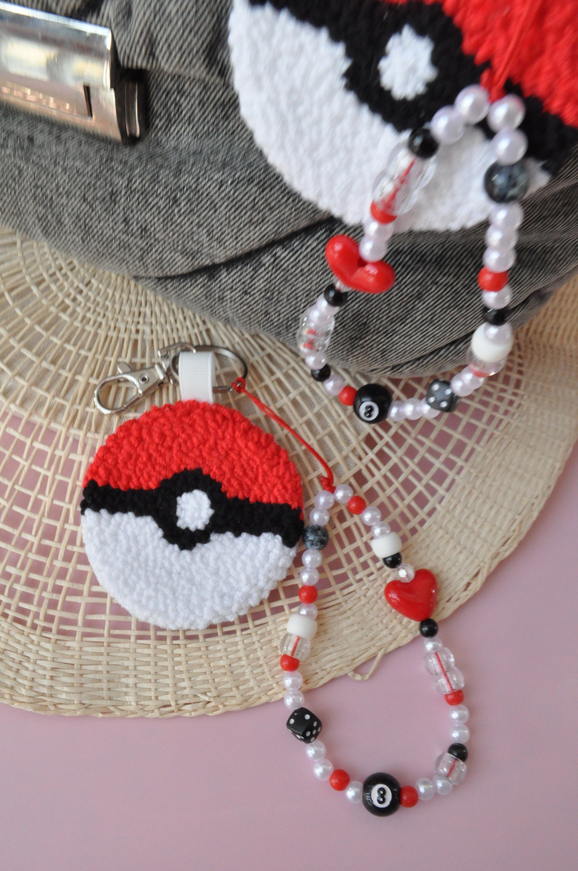 Level up your look with our handmade Pokémon bag charm, featuring a tufted Pokéball and colourful beads. A playful accessory for anime, gaming and kawaii fans.