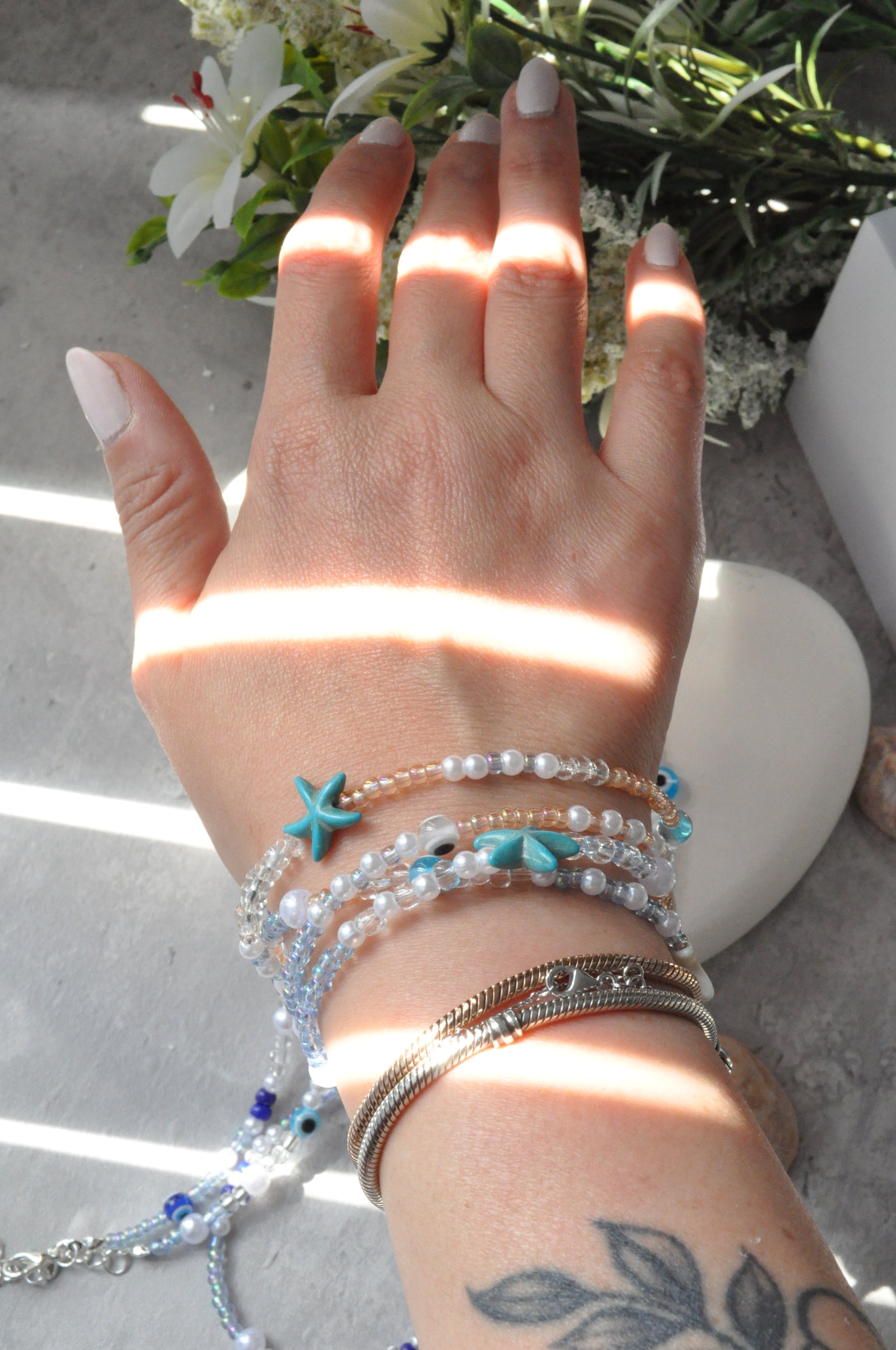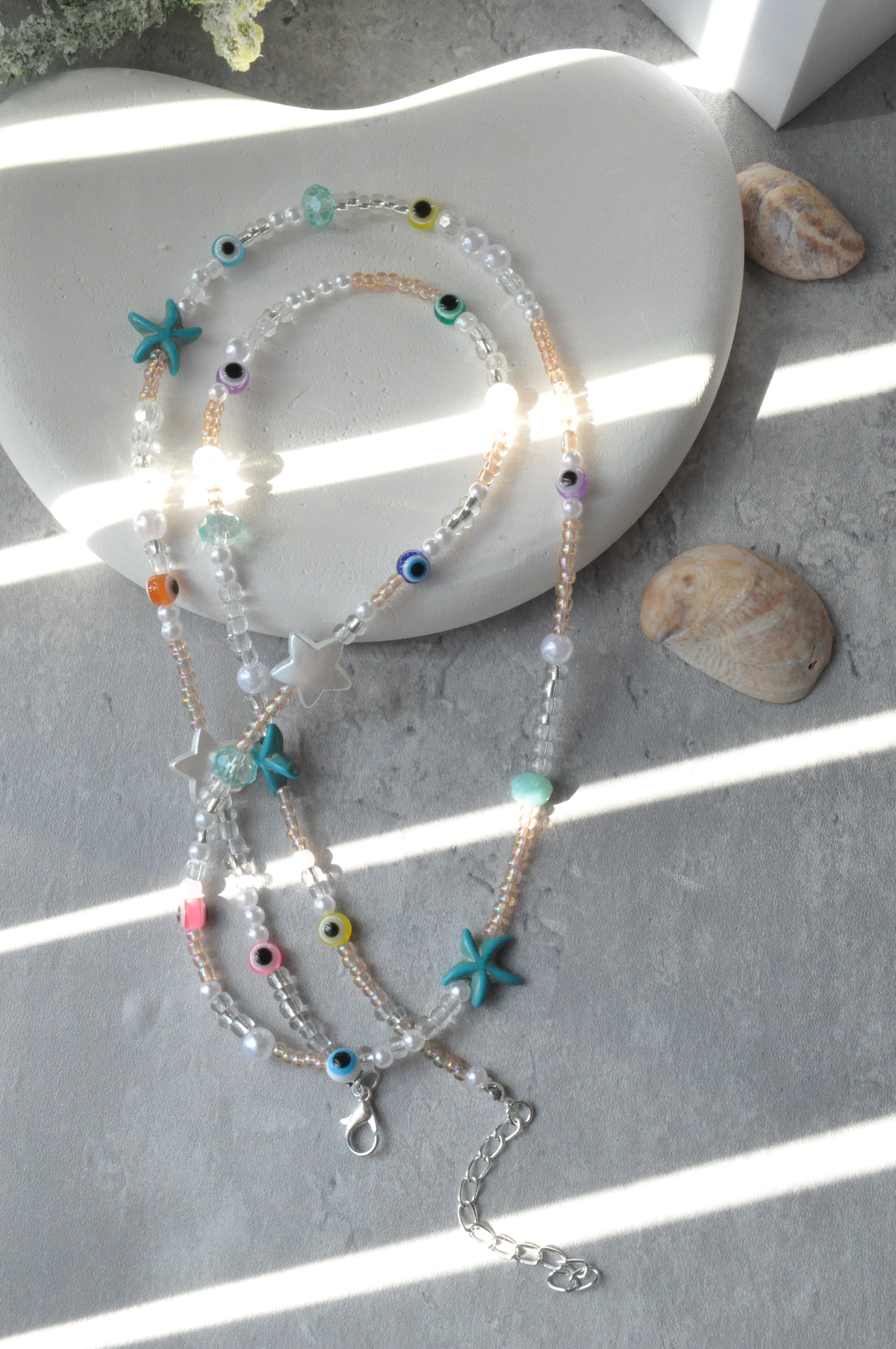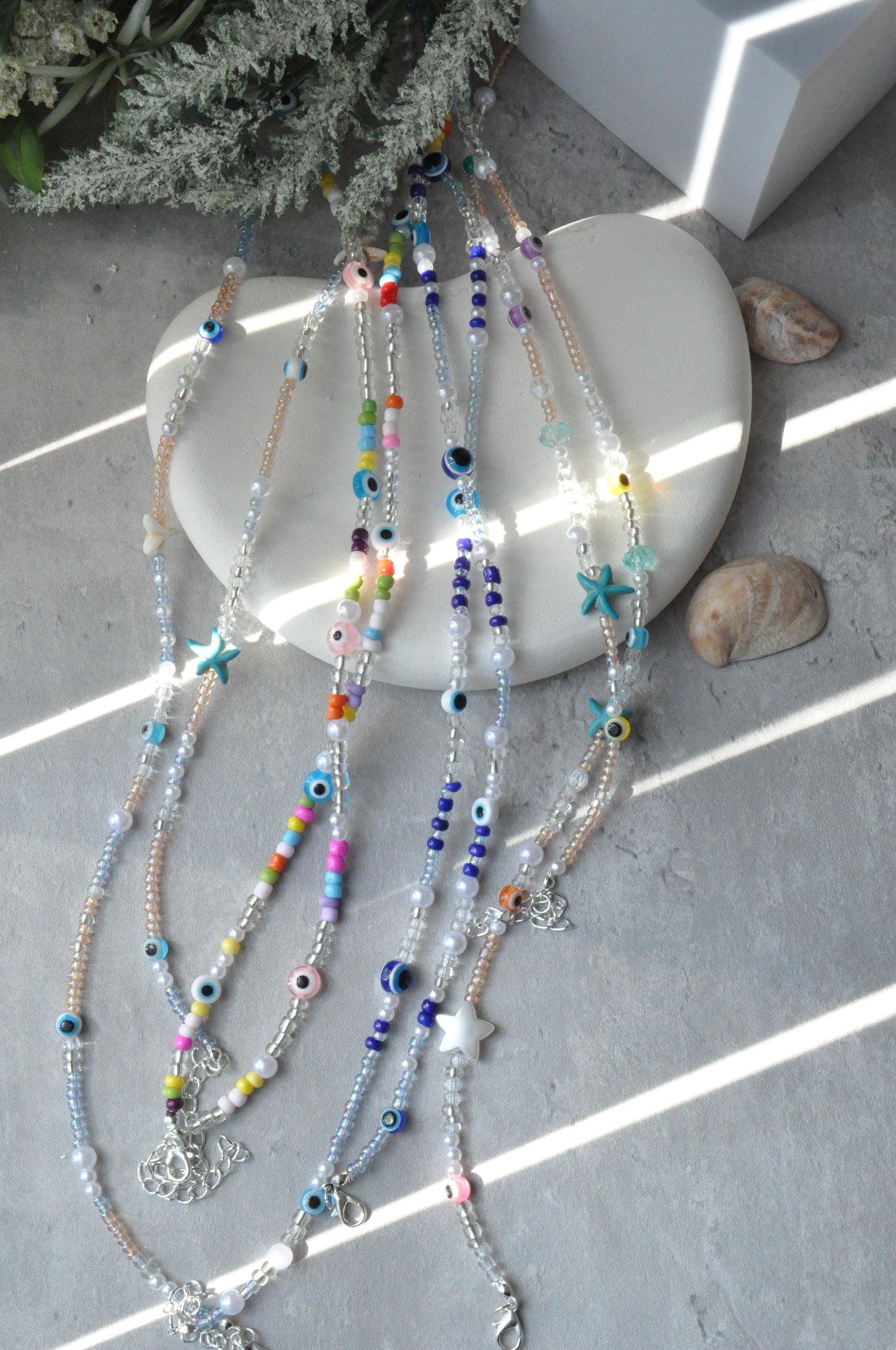 Add a playful twist to your look with our handmade beaded belly chains. Choose from 3 fun styles: starfish, evil eye, or colourful mix. Each piece is versatile – wear it as a belly chain, wrap it as a bracelet, or layer as a necklace. Made with quality glass beads and unique charms, they’re perfect for summer vibes, festivals, or beach days. Adjustable clasp for a comfy fit.