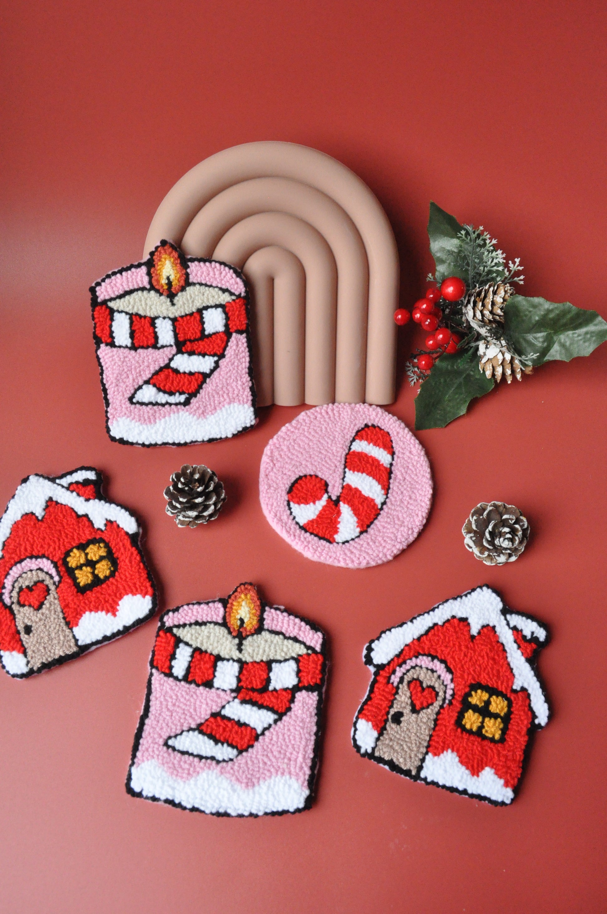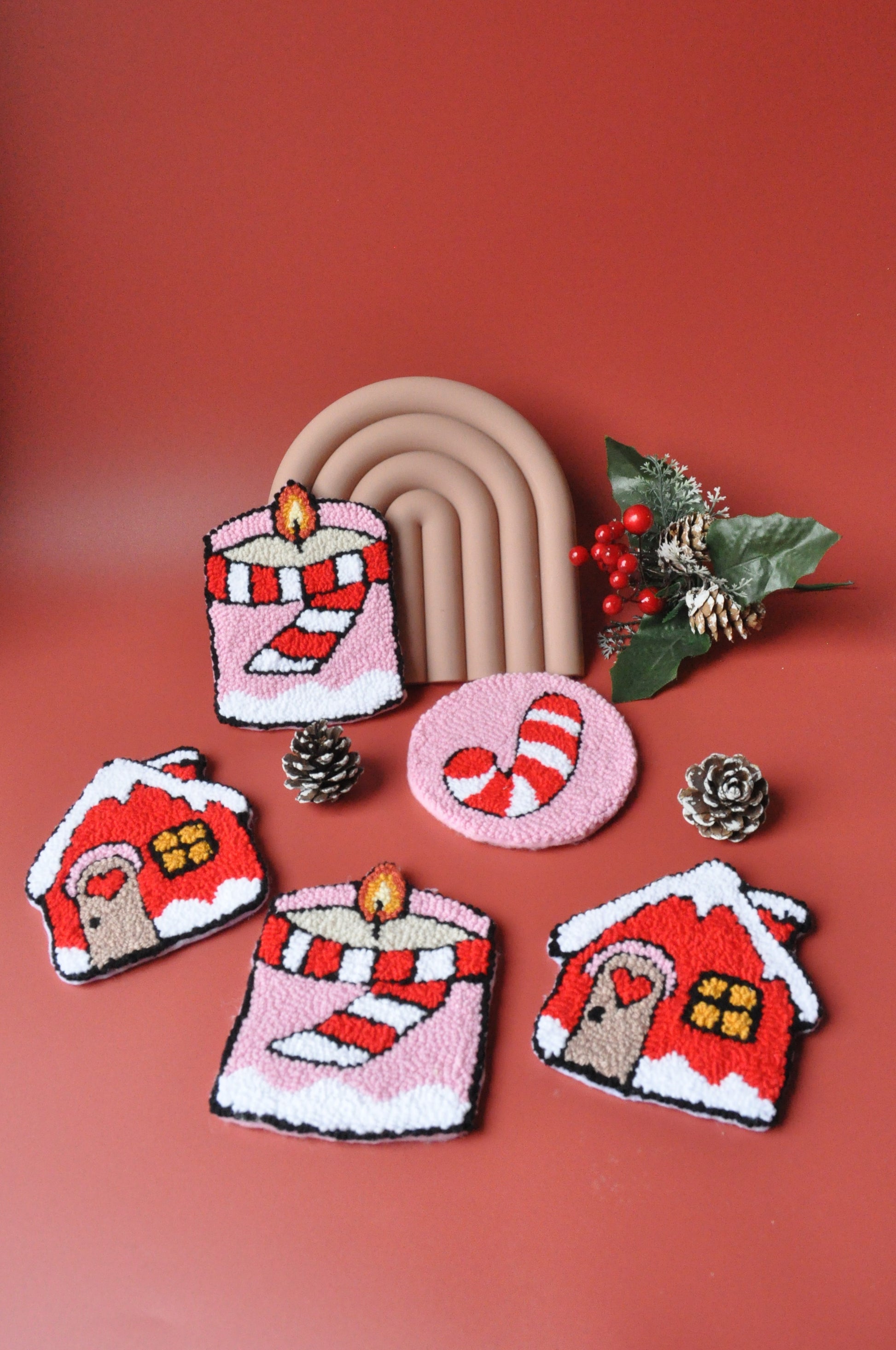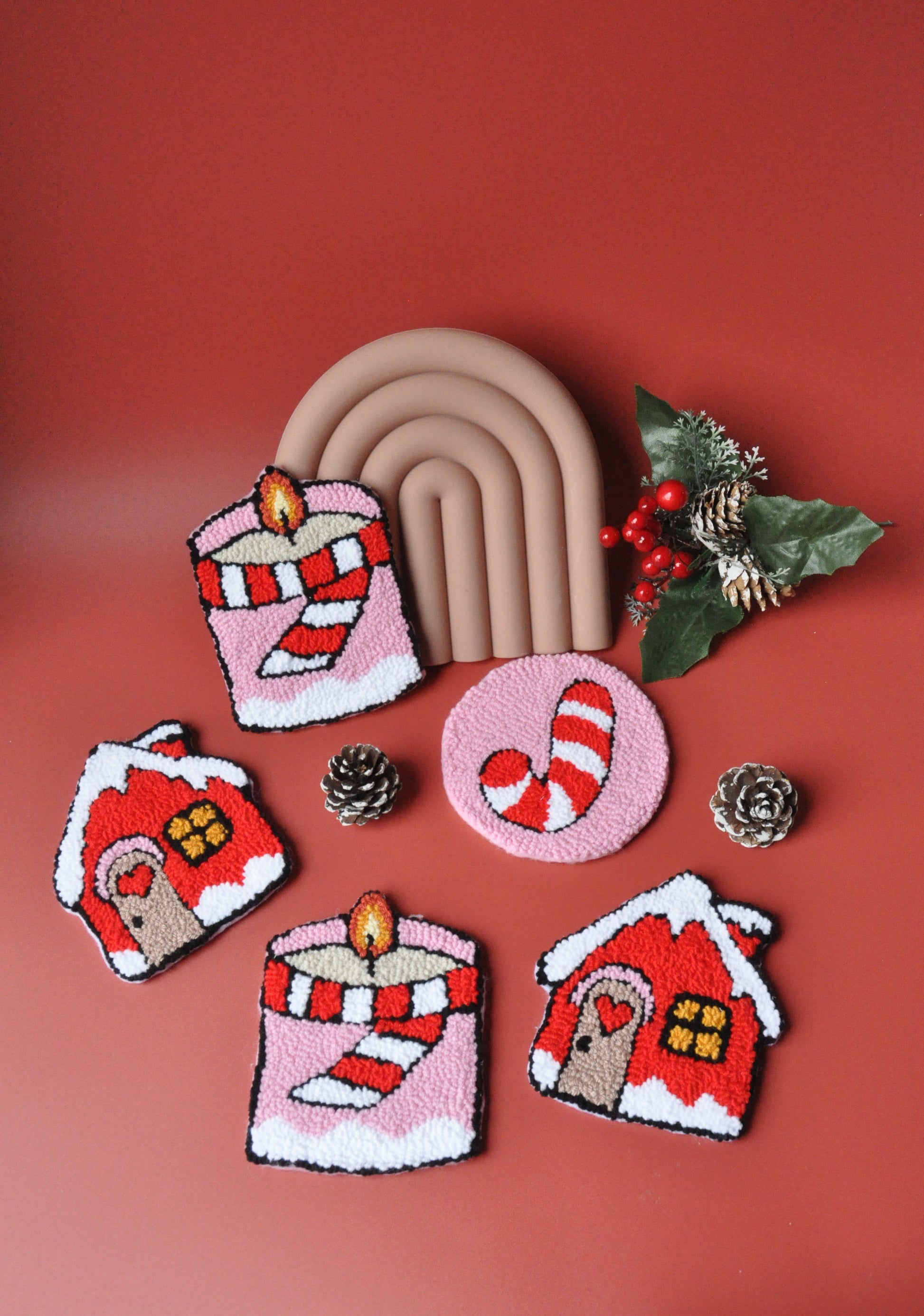 Transform your home into a winter wonderland with our festive holiday decor! Each handcrafted Christmas mug rug adds warmth to your holiday gatherings. Enjoy the delightful scent of our candle in a jar, creating a cosy atmosphere as you sip your favourite seasonal beverage. Treat yourself or a loved one to a sweet candy cane and a whimsical snowy house decoration. Perfect for celebrating the holiday spirit, these charming pieces bring joy and character to any corner of your home!