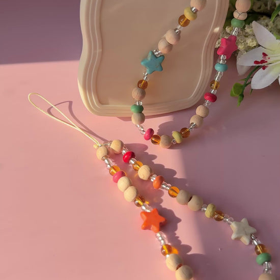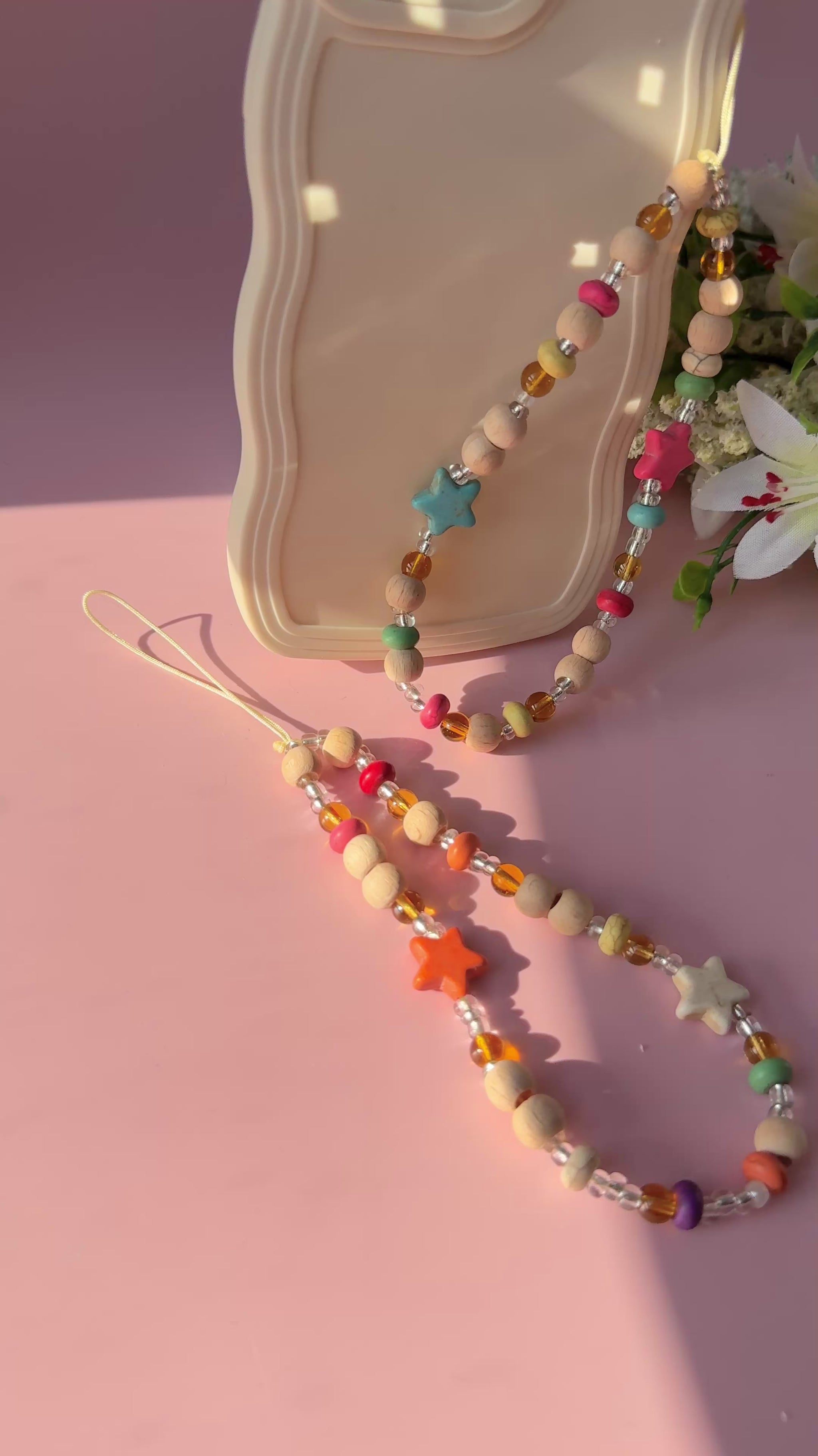 Add a touch of cuteness and personality to your phone with our Cute Wooden Beaded Phone Charm. Handcrafted with a mix of natural wooden beads, kawaii star details, and soft beige tones, this strap is the perfect blend of minimal and playful style.
